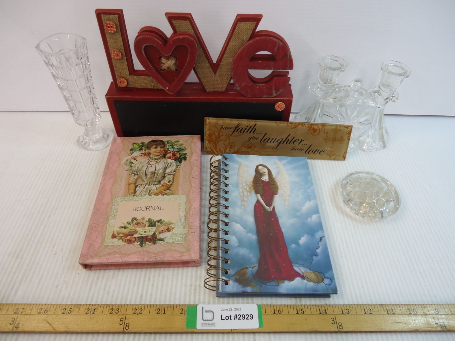 Love Sign/Journals(2)/Crystal Bud Vase/Candlestick Holder/Flower Frog/Standing Sign