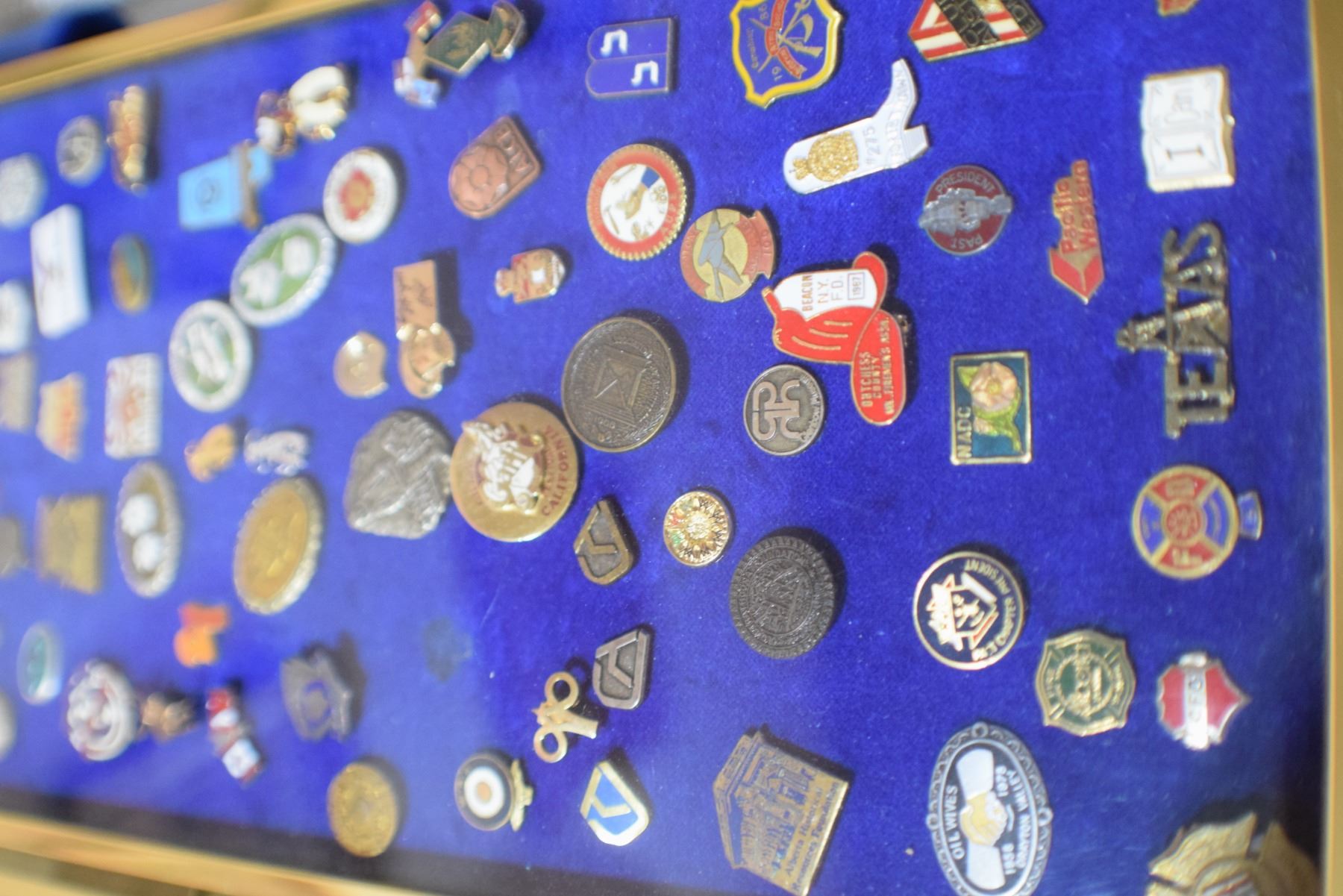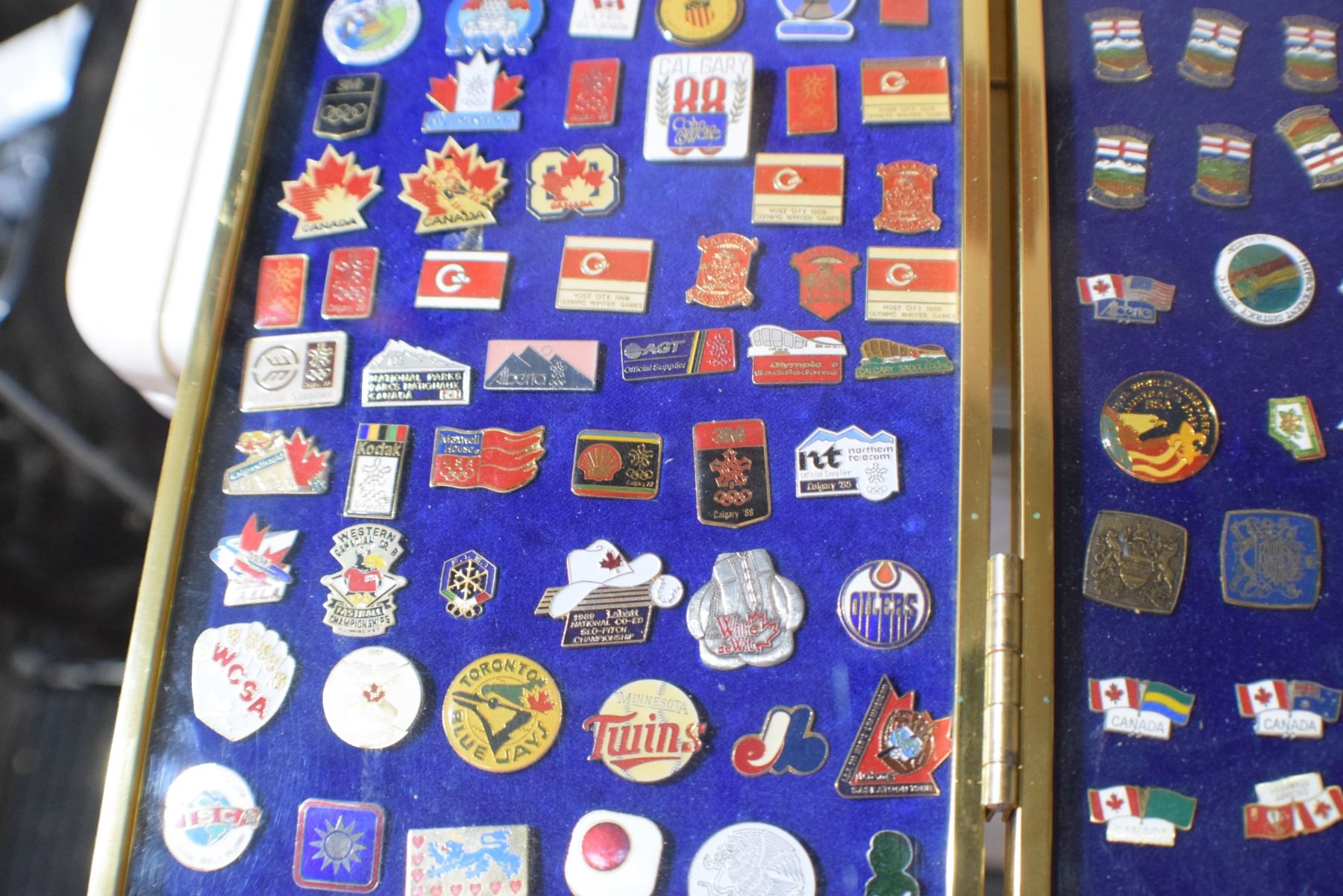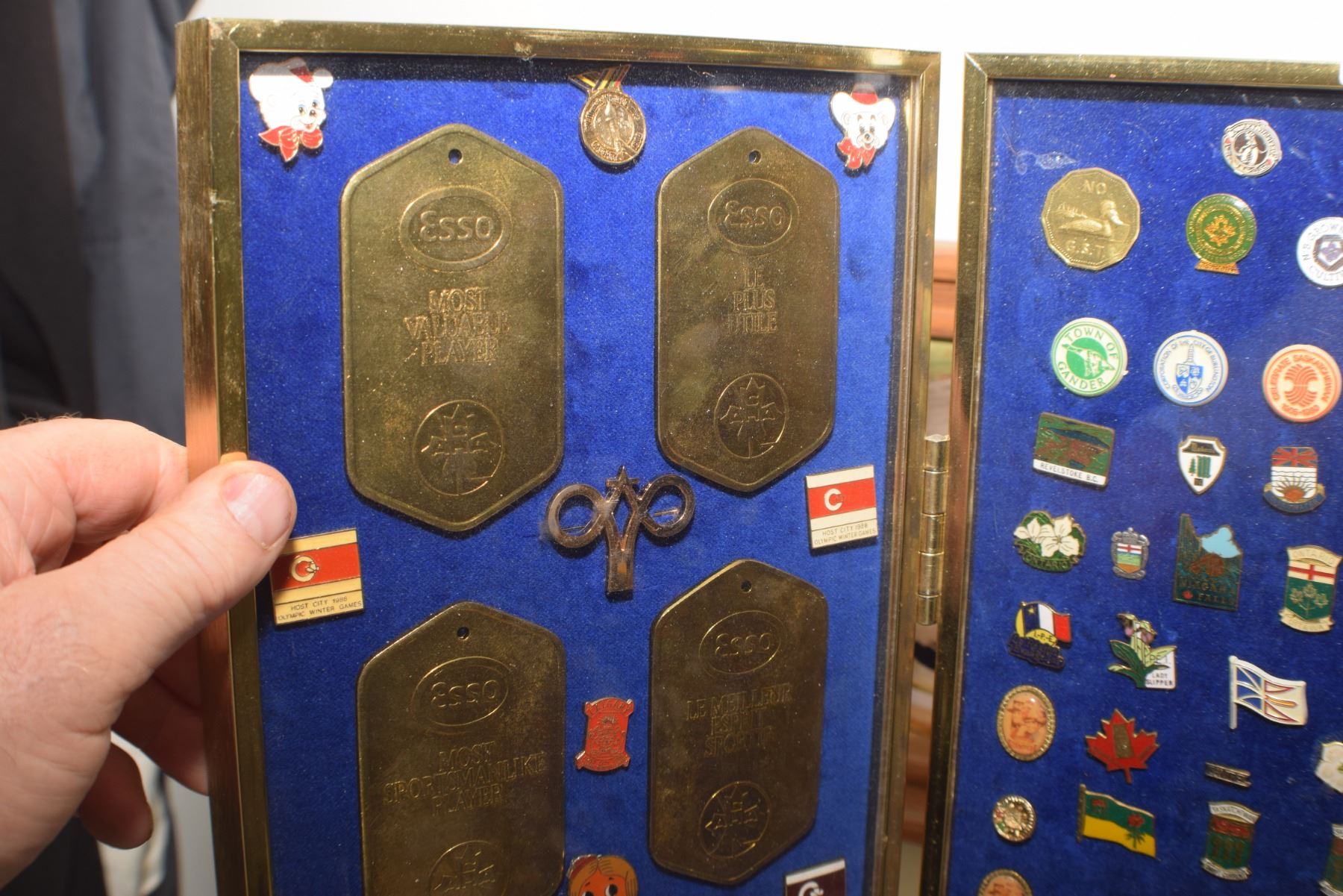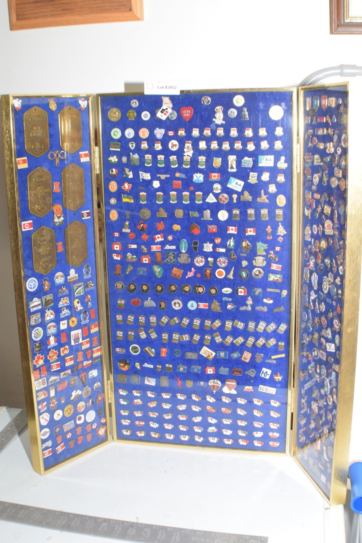 MASSIVE PIN COLLECTION FRAMED , SPORTS , ESSO HOCKEY, OIL COMPANIES, CANADIANA