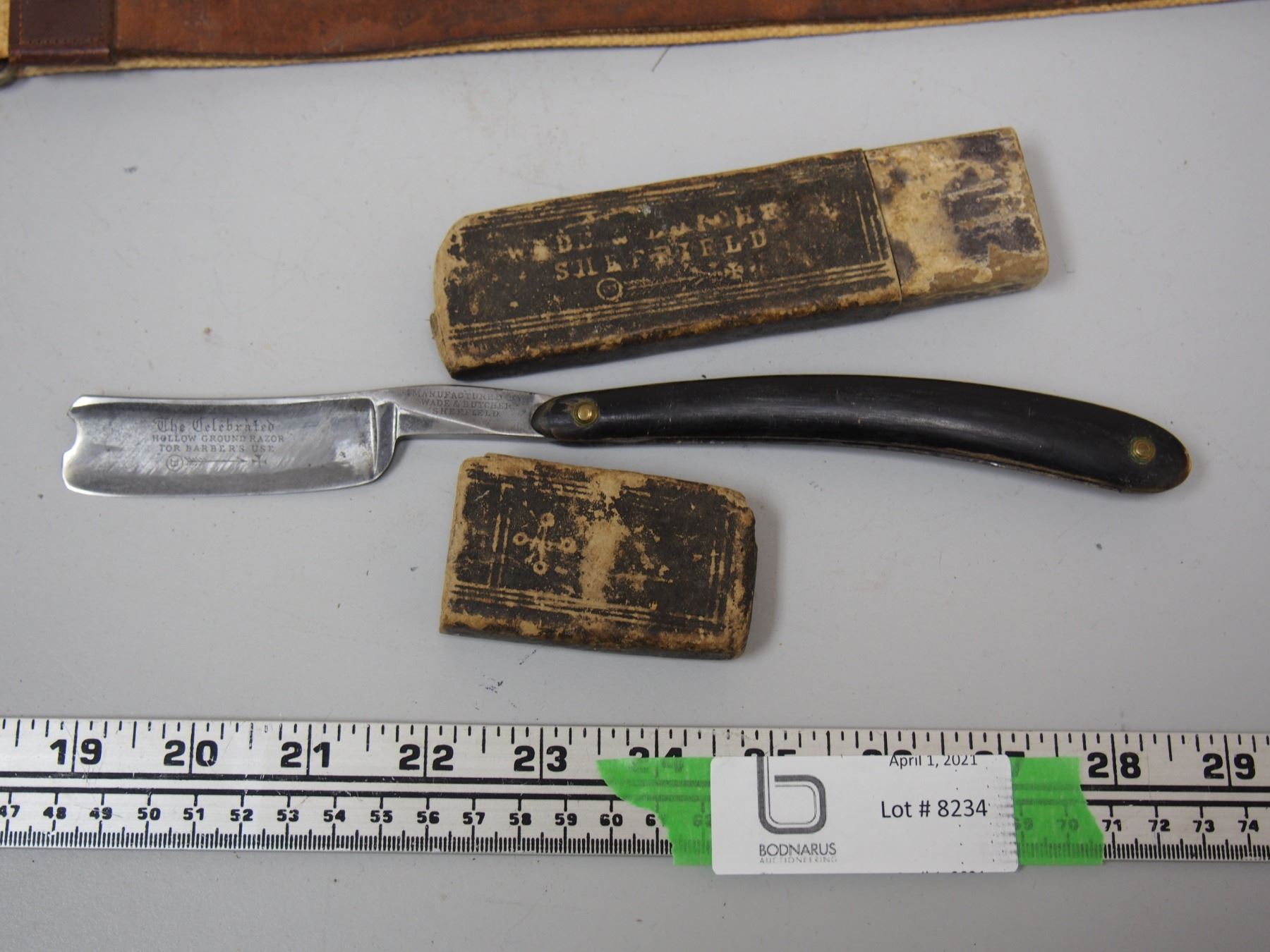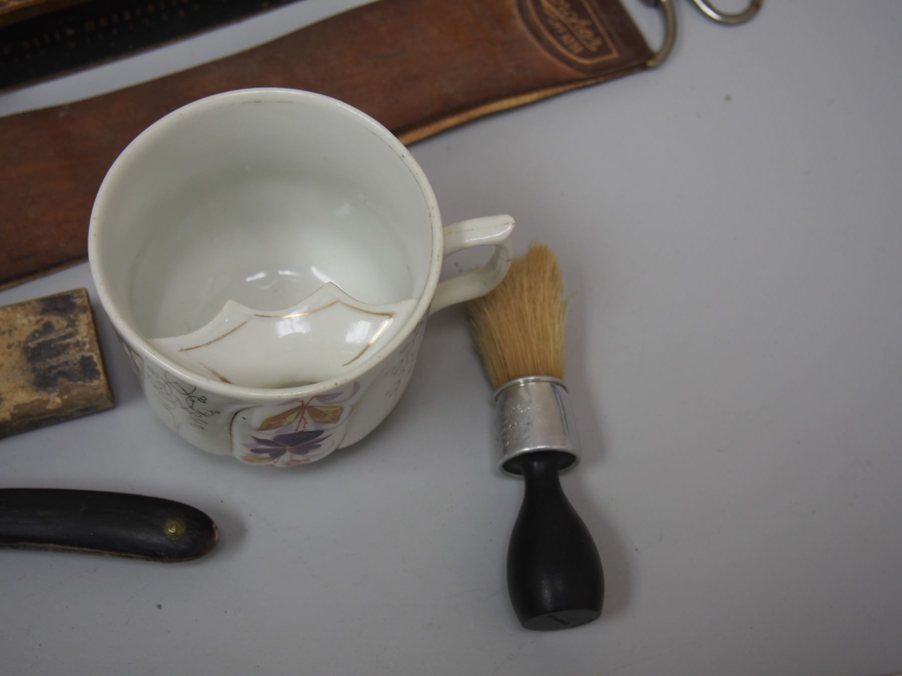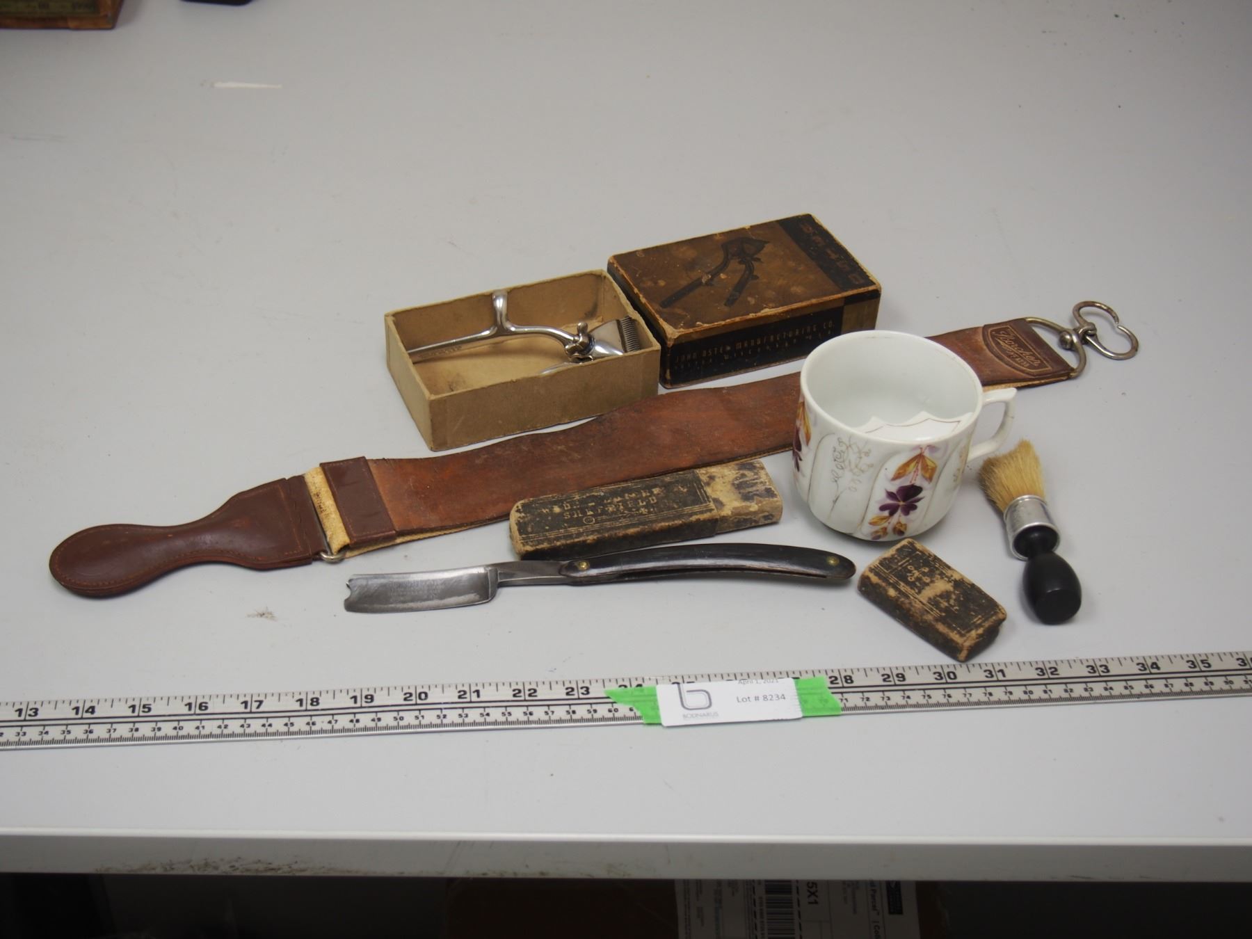 MOUSTACH CUP WITH BRUSH & THE SCORCHER STRAP, CLIPPER & THE CELEBRATED HOLLON GOURD RAZOR STRAIGHT RAZOR WITH CASE