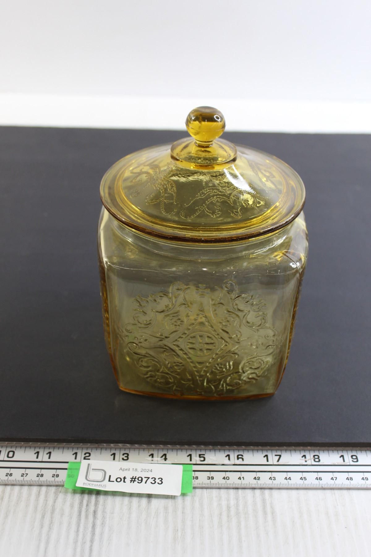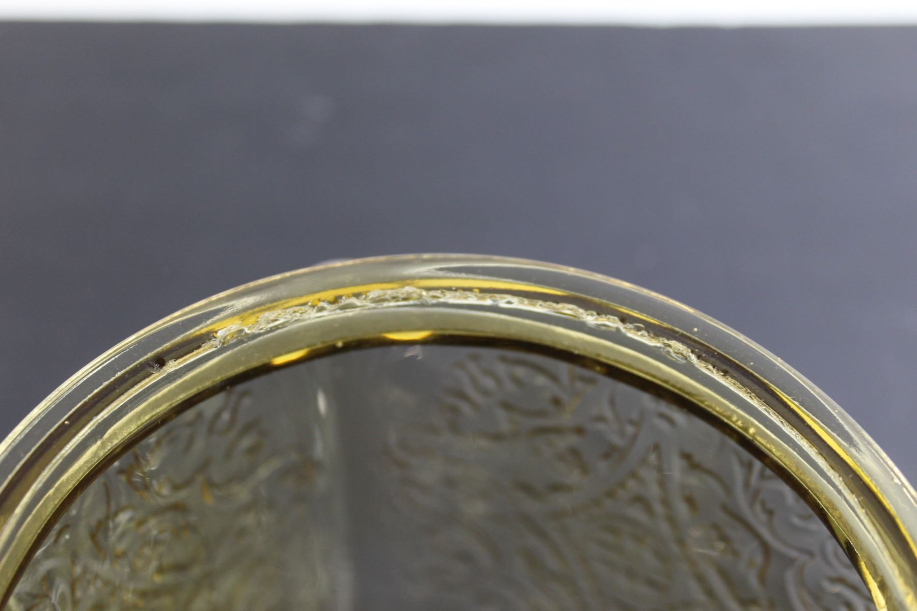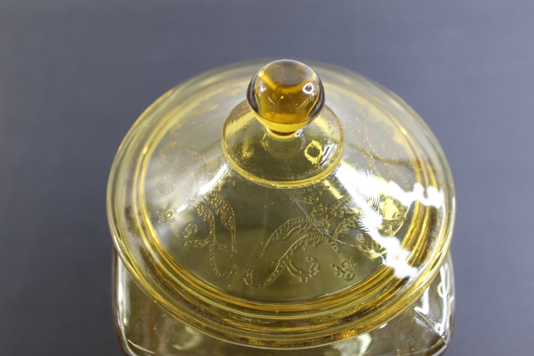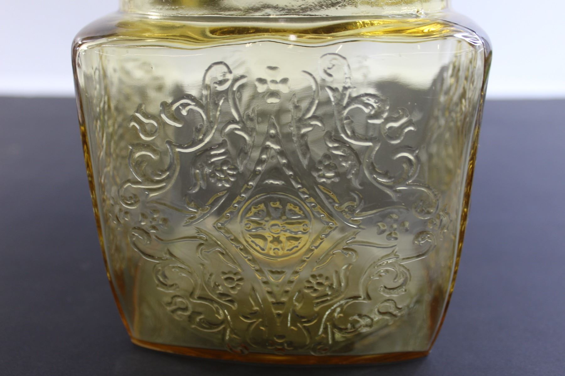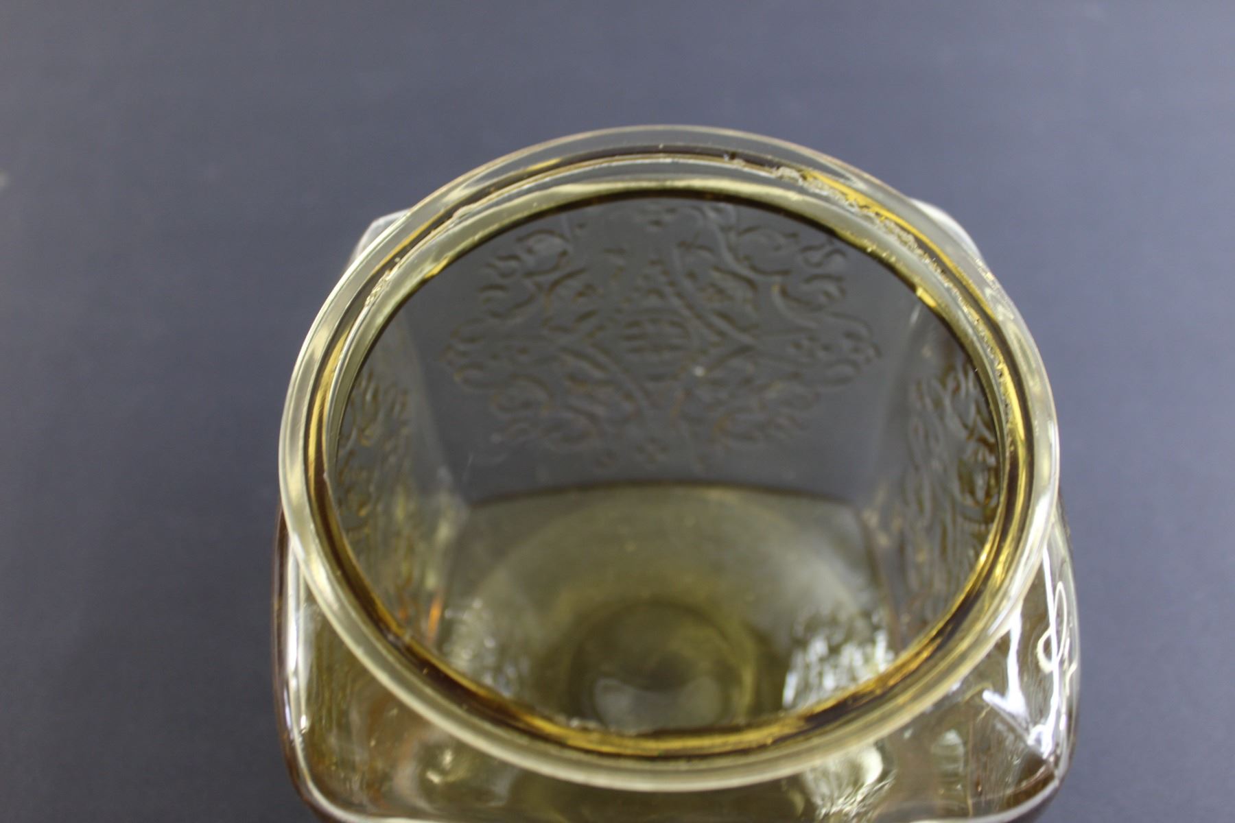 Madrid Amber Depression Glass Biscuit Jar - Inside Chips