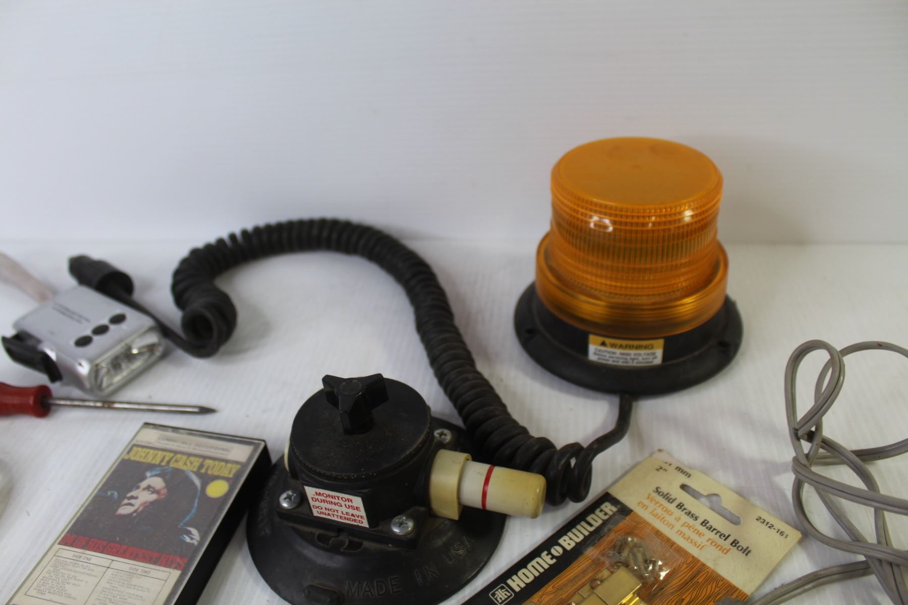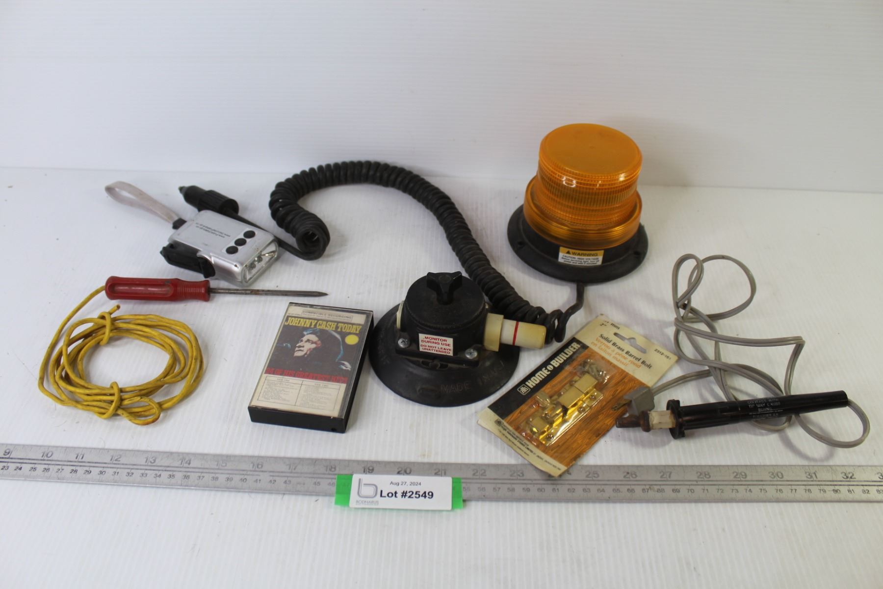 Magnetic Amber Warning Light - Pump Suction Cup - Brass Latch - Crank Flashlight - Soldering Iron - Misc. Items