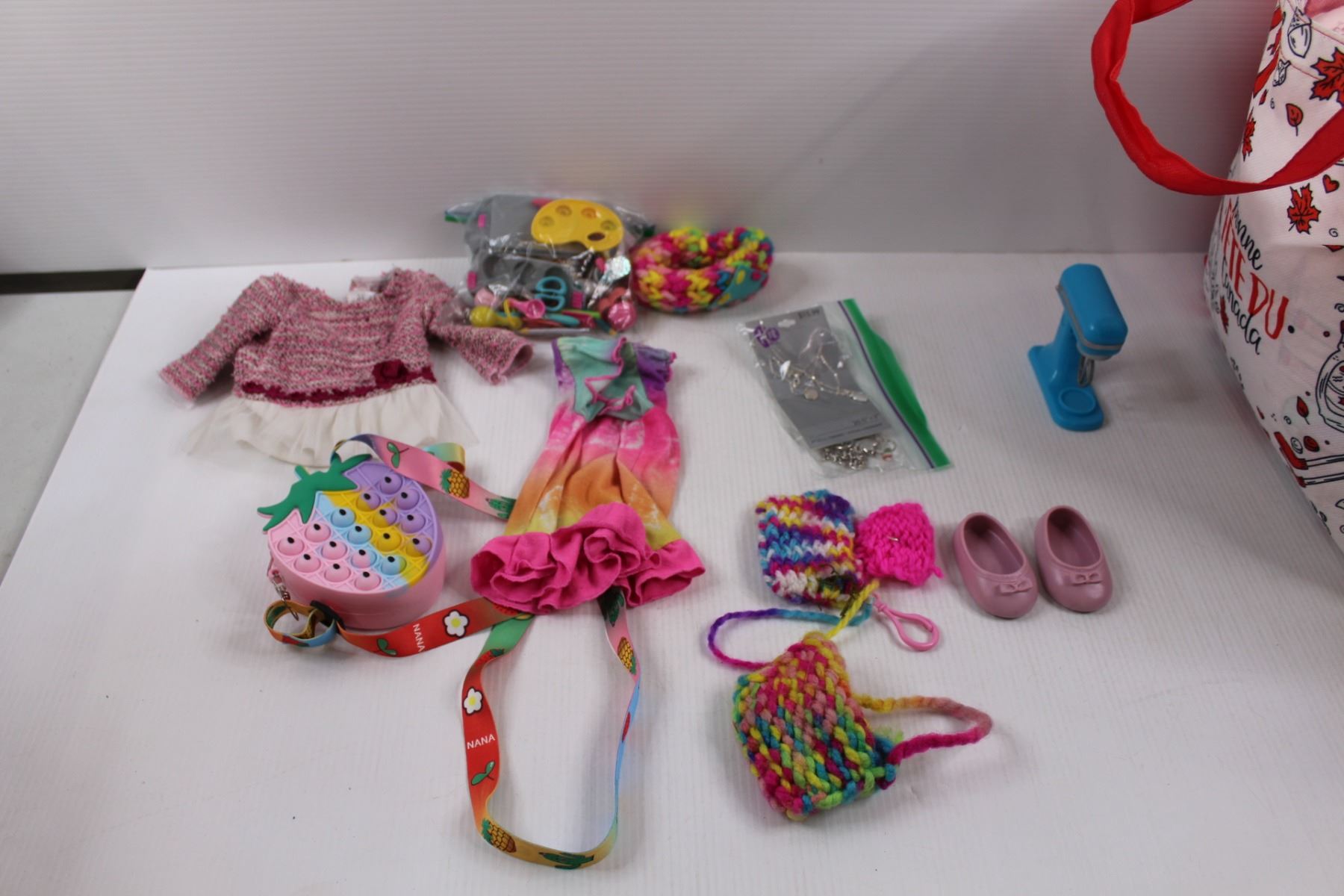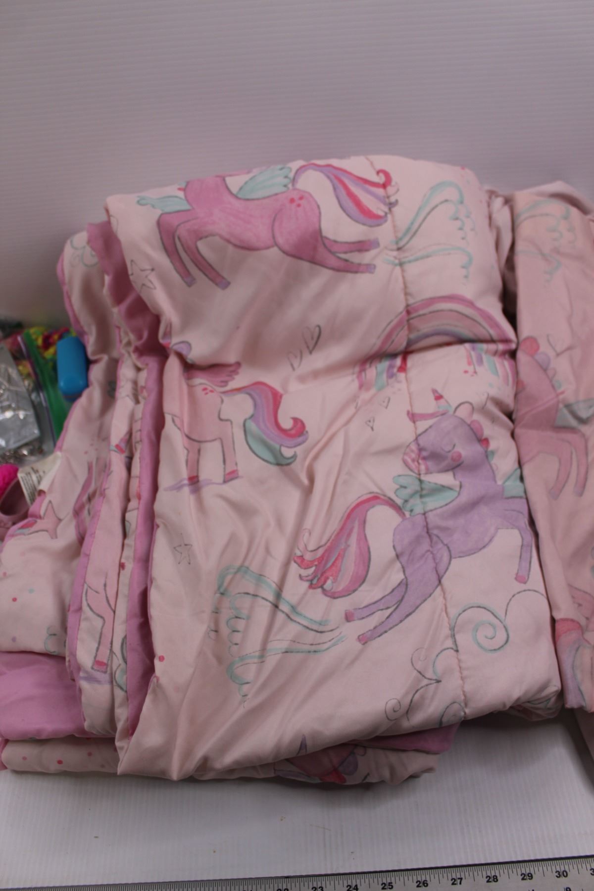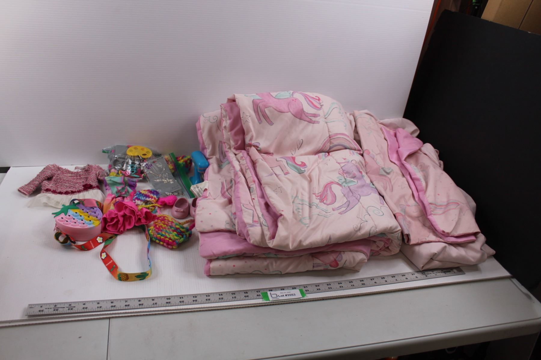 Mainstays Kids Pegasus Bedding Set (Comforter, (2) Sheets, (2) Pillow Shams)& Various Girls Doll Accessories, Cloths, Small Hand Bag & Jewelry