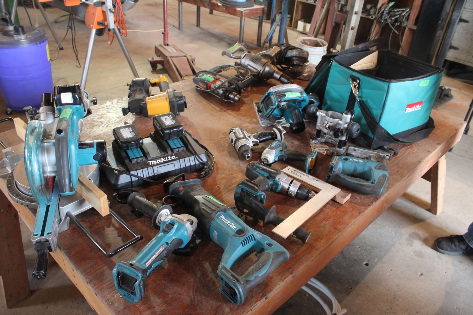 Makita 9 Piece Cordless Toolset with 3 Batteries Charger Mitre Saw, Drills, Impact, Router, Recip Saw, Skil Saw
