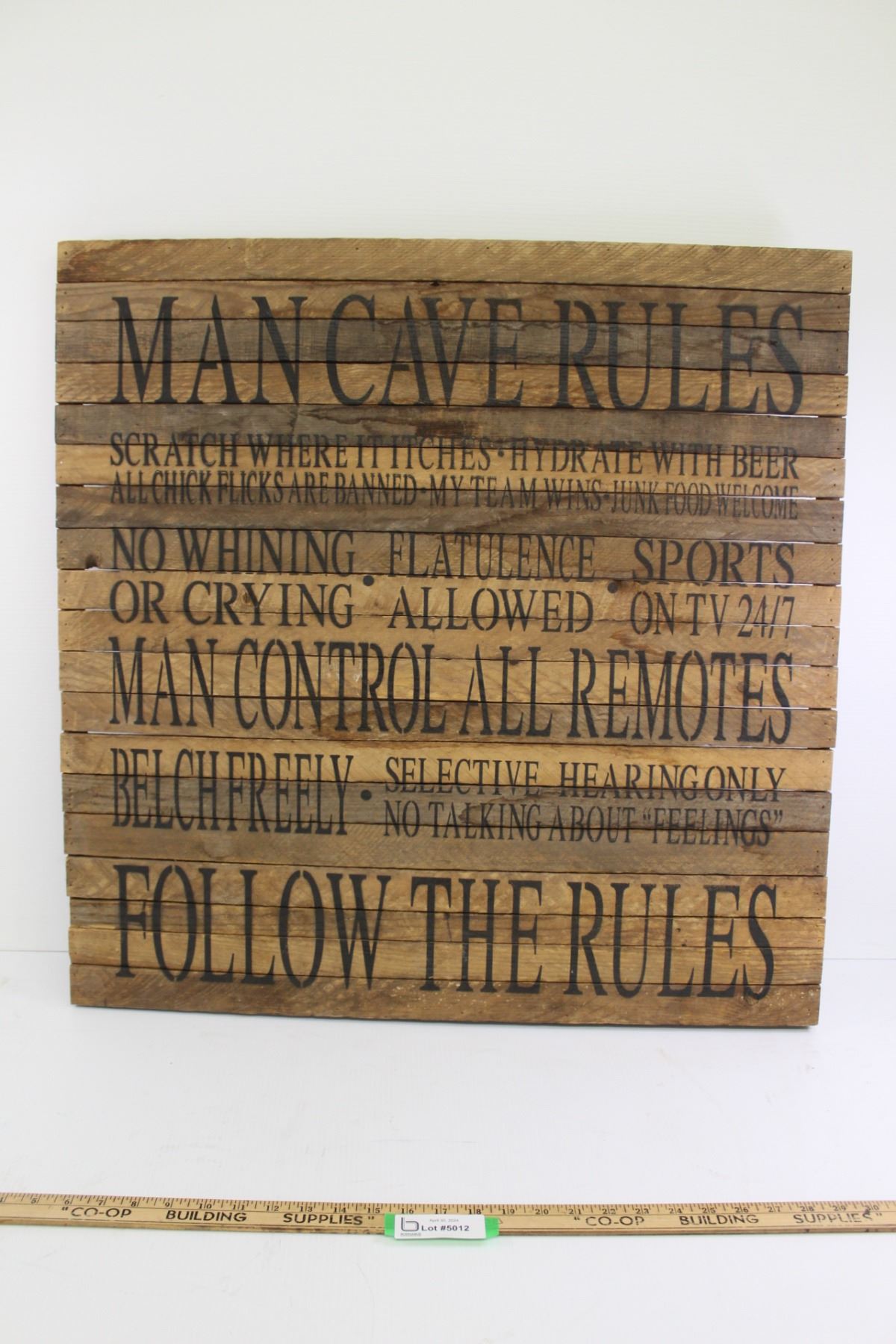 *Man Cave Rules Wooden Wall Art Piece - 29" x 29"