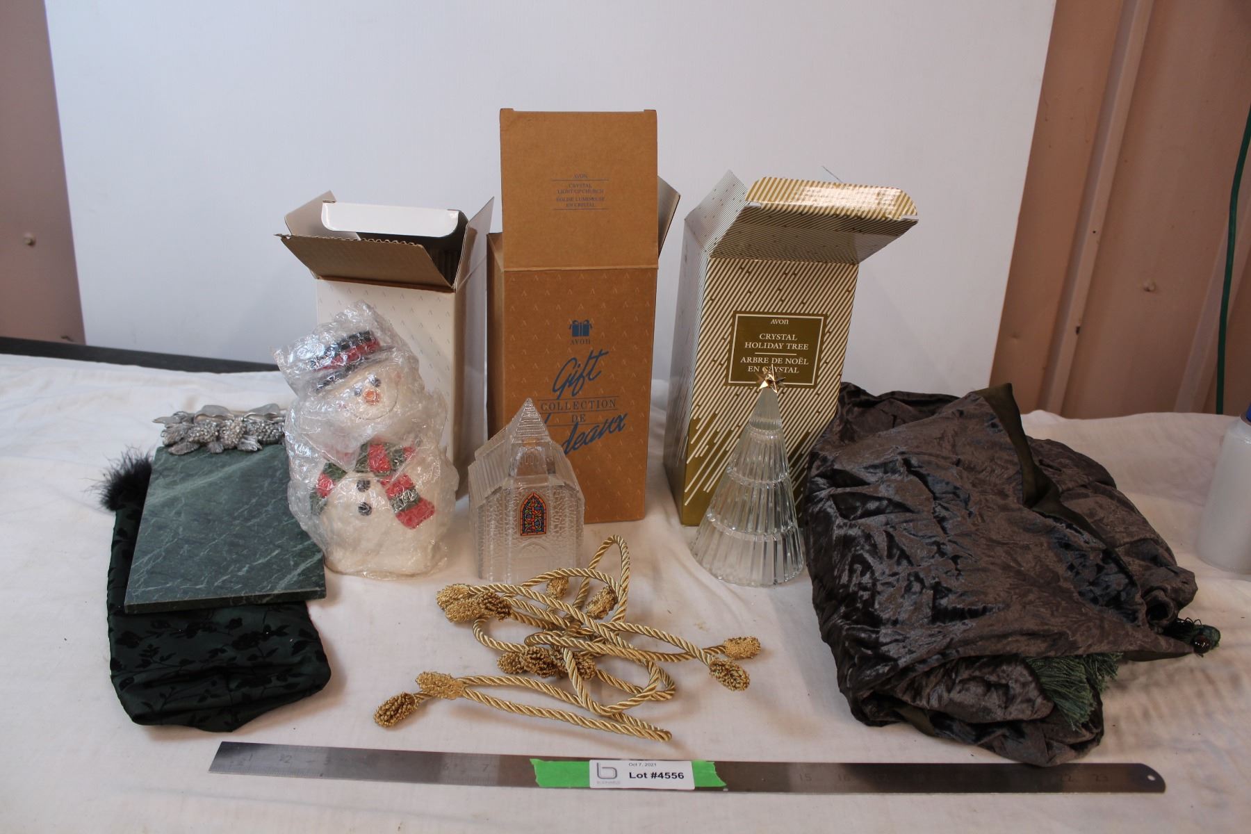 Marble charcuterie board, Avon holiday decorations, tablecloth