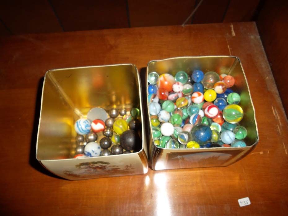 Marbles Two vintage tins.
