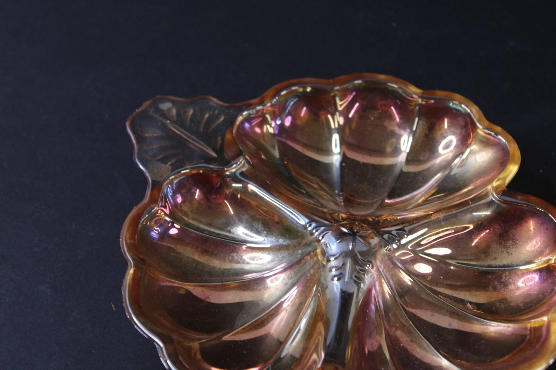 Marigold Iridescent Clover Divided Candy Dish - 7" Diameter