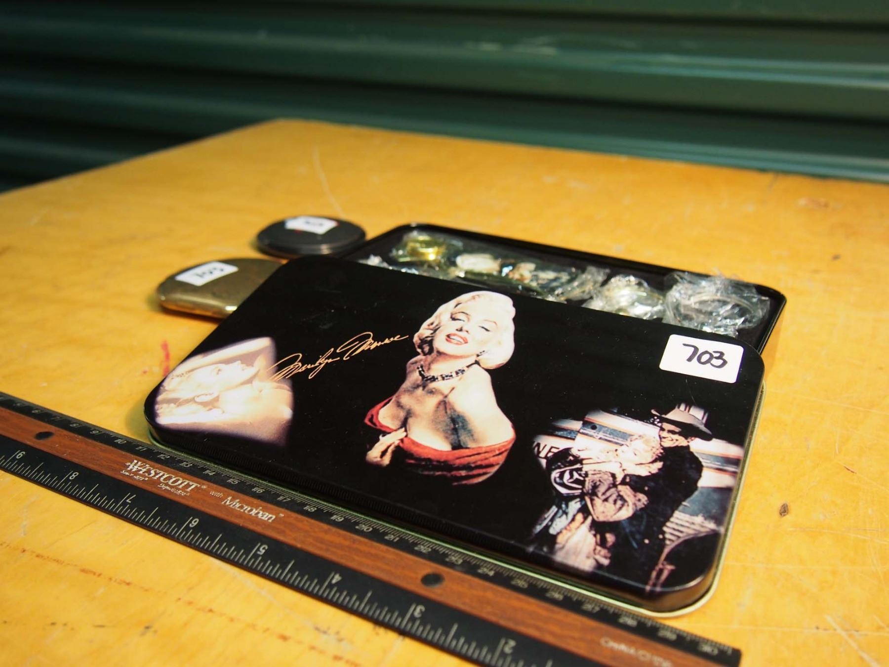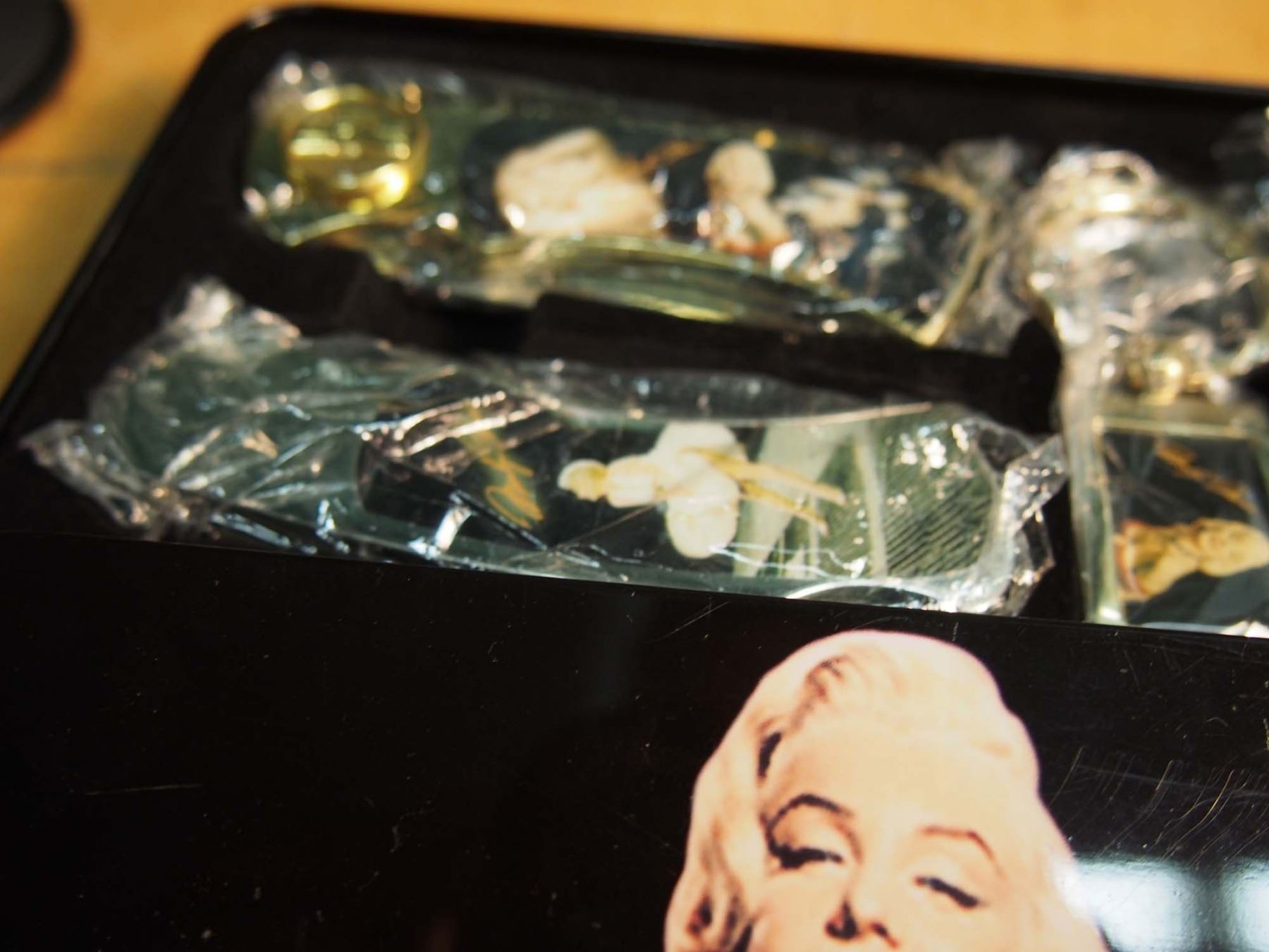 Marilyn Monroe Tin Set With Knives And Rings, & Hand Mirrors