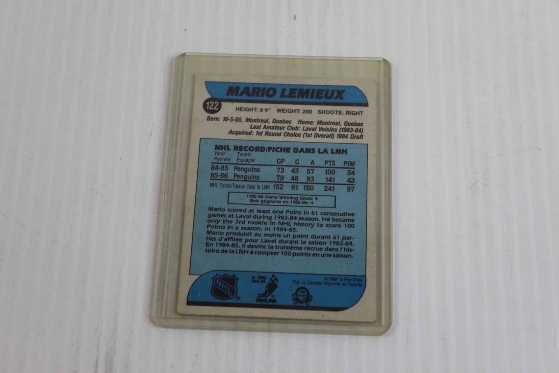Mario Lemieux 1986-87 OPC Hockey Card