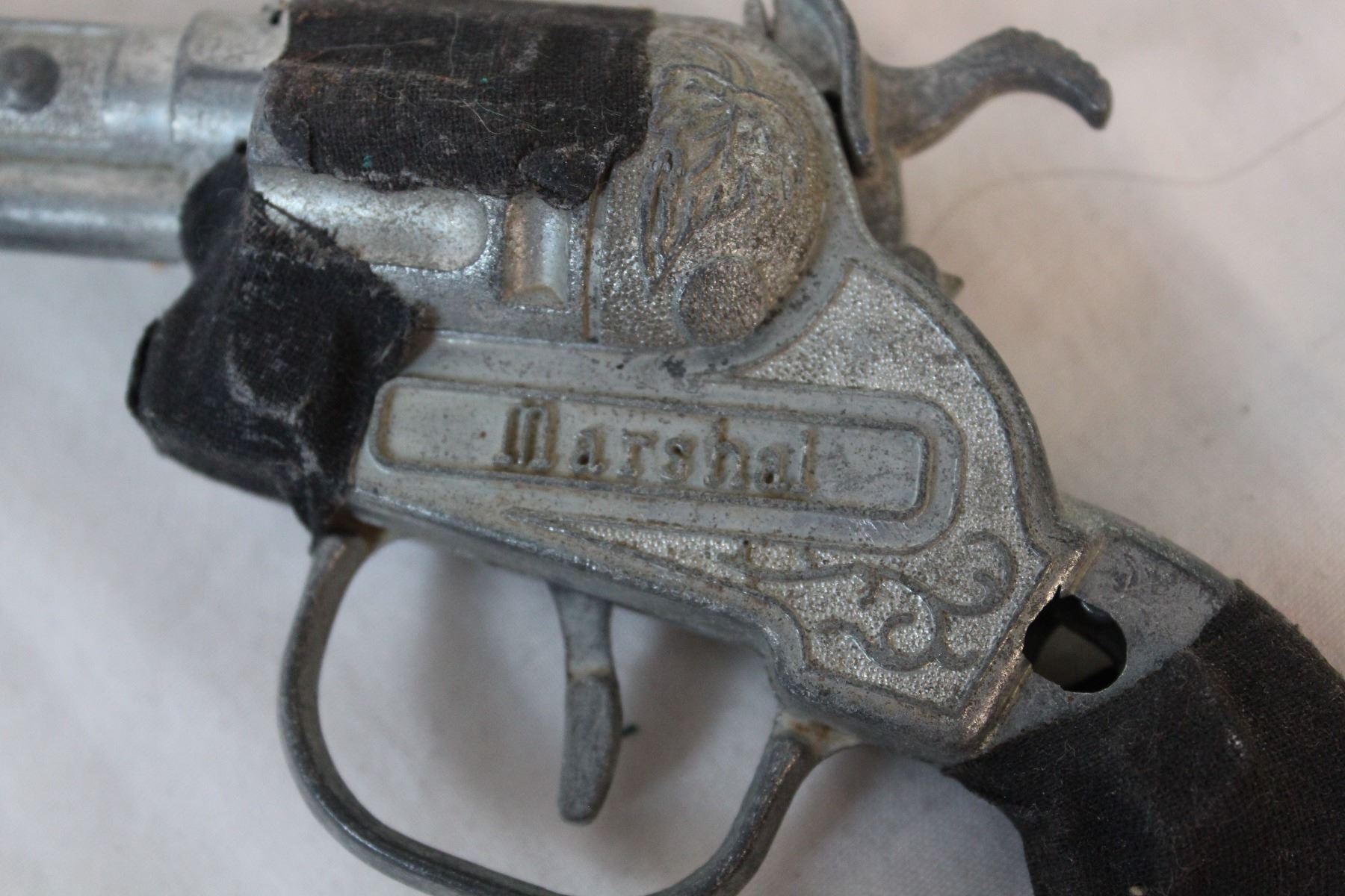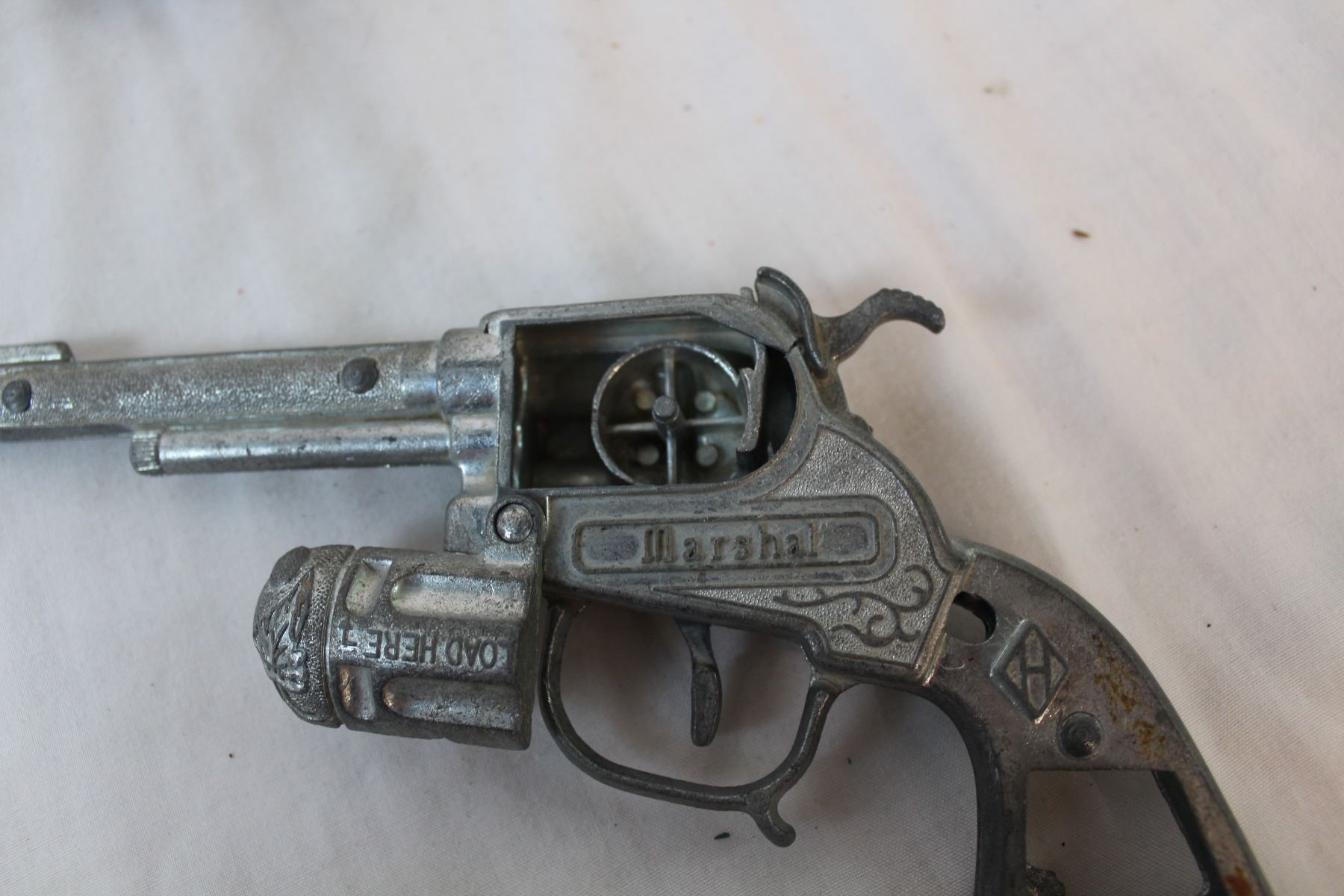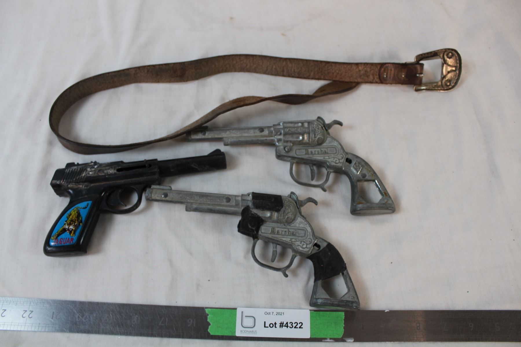 Marshel's Cast Metal cap guns, holster, misc plastic cap gun