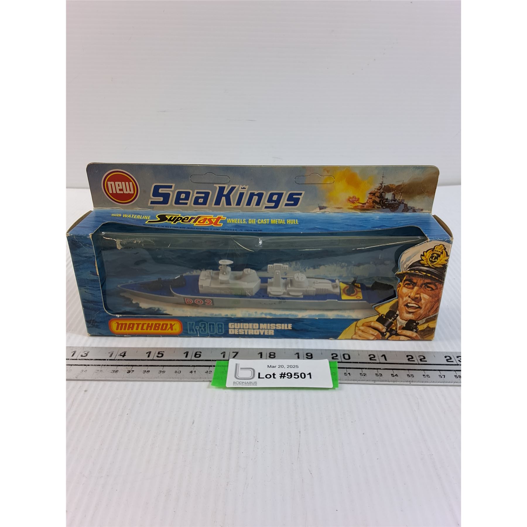 Matchbox K-308 GuidedMissleDestroyer. Plastic open on one side.