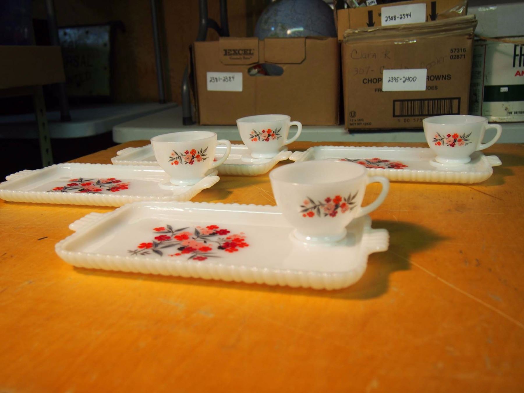 Matching Sets of Trays and Tea Cups (4 Pairs)