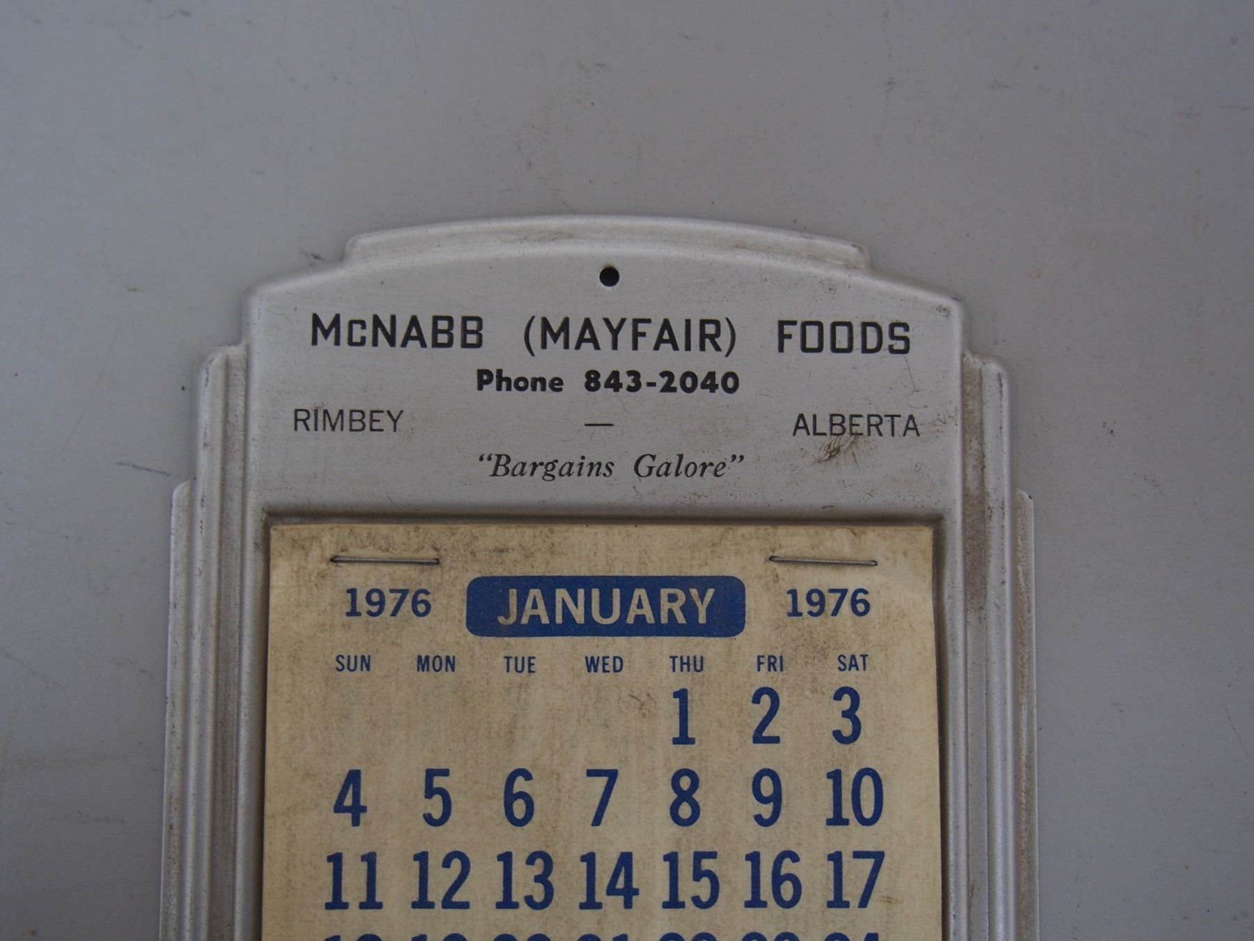 McNabb (Mayfair) Foods Rimbey Alberta 1976 Calendar