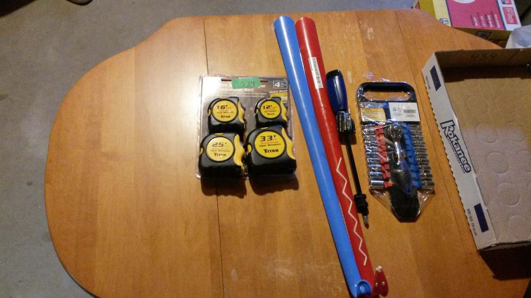 Measuring Tape Set (4-Piece), 1/4” DR Ratchet/Socket Set (22-Piece), & Misc.