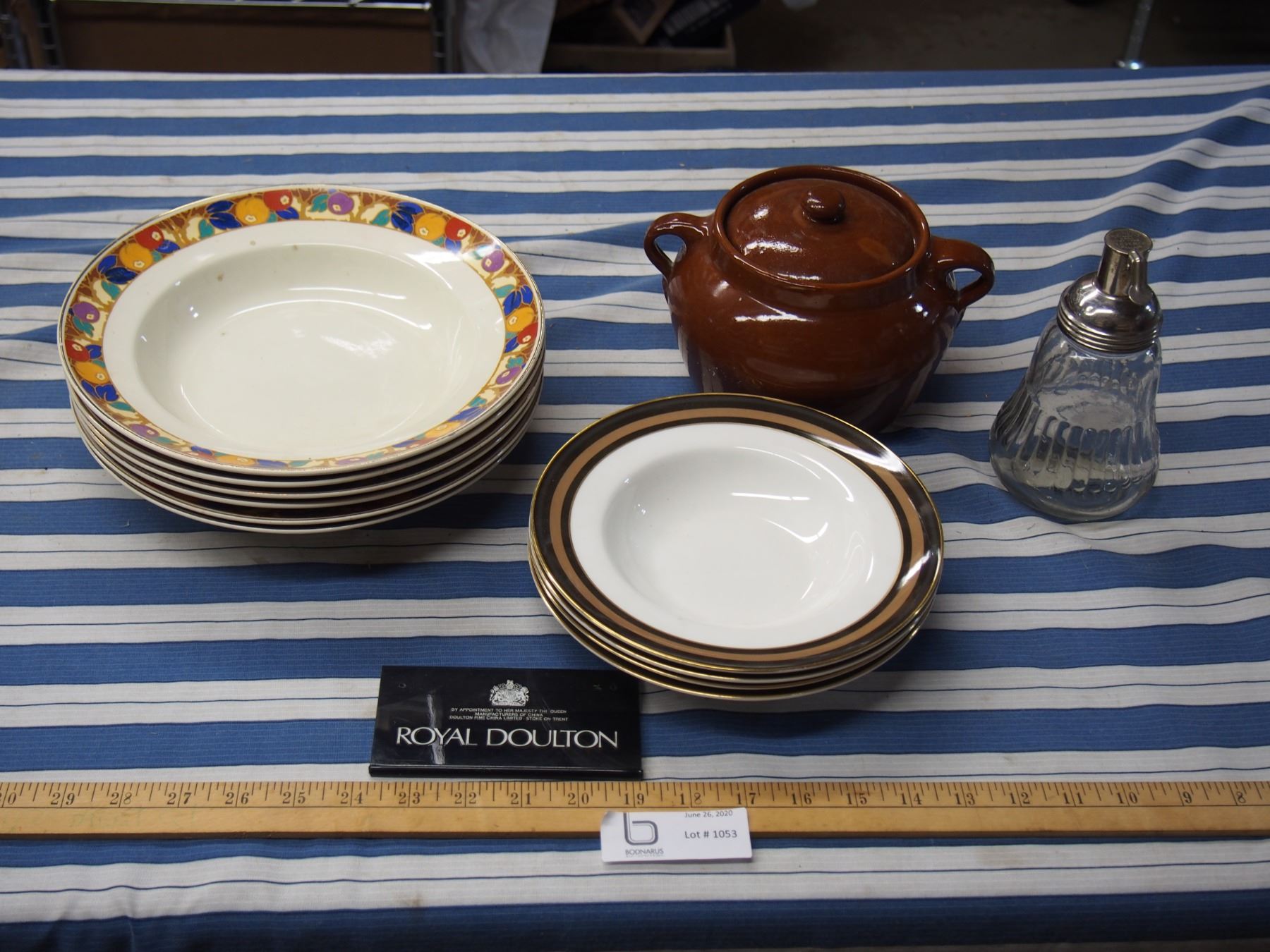 Medalta Bean Pot, 1890's Sanito Syrup Dispenser, 6 Antique Adams England Bowls, 4 Royal Doulton Bowls