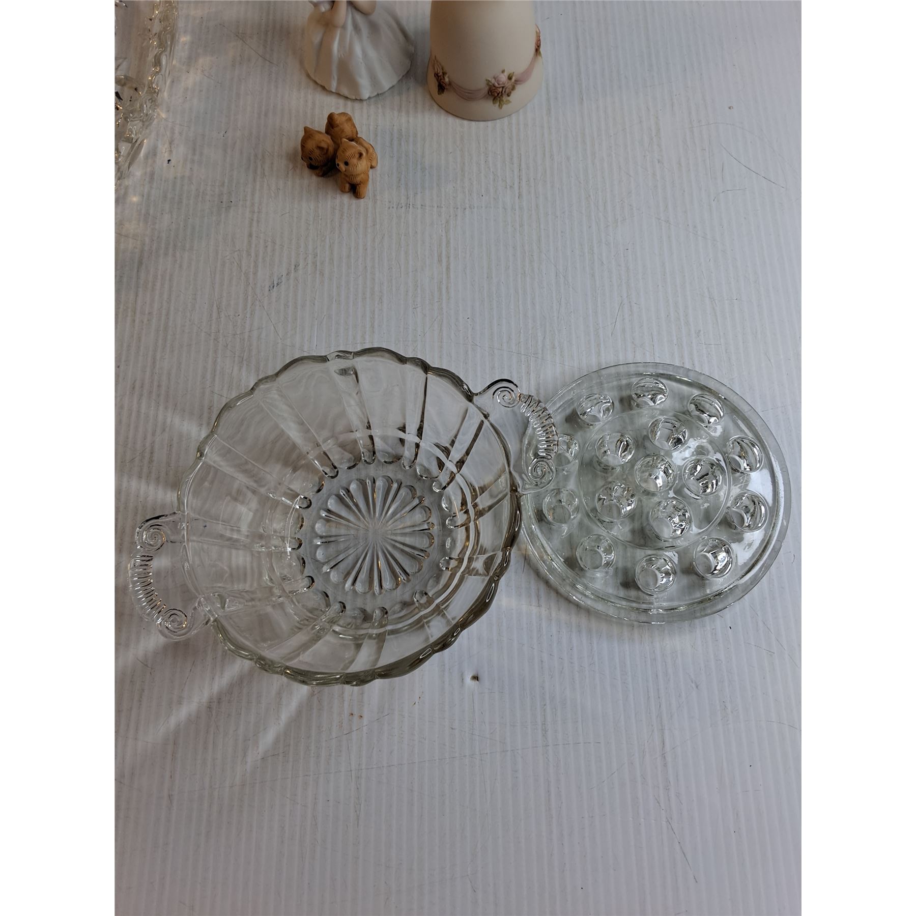 Memories Of Yesterday  Bell/ Glass Bowl With 16-Hole flower Frog  Anchor Hocking -  Old Cafe