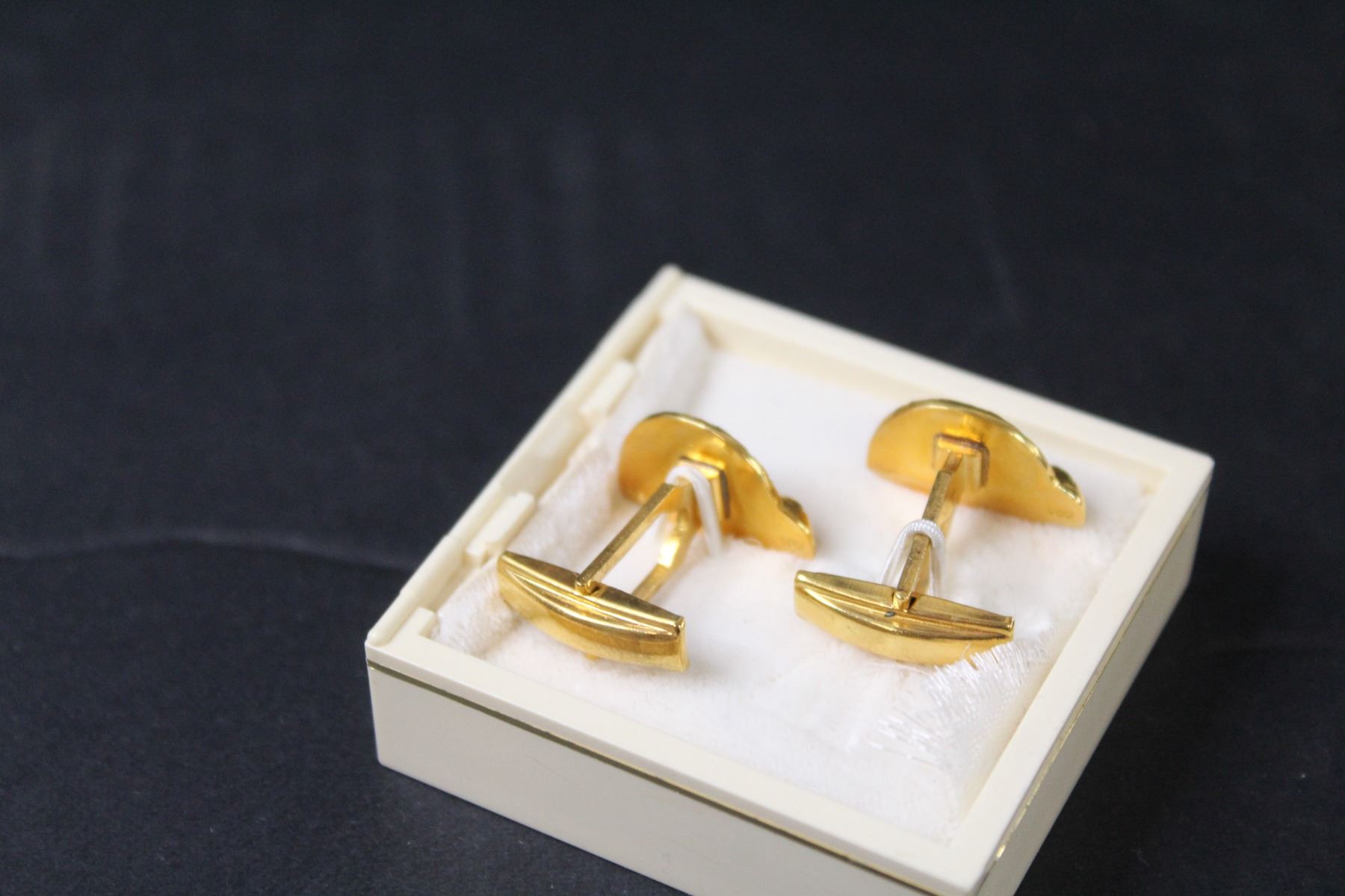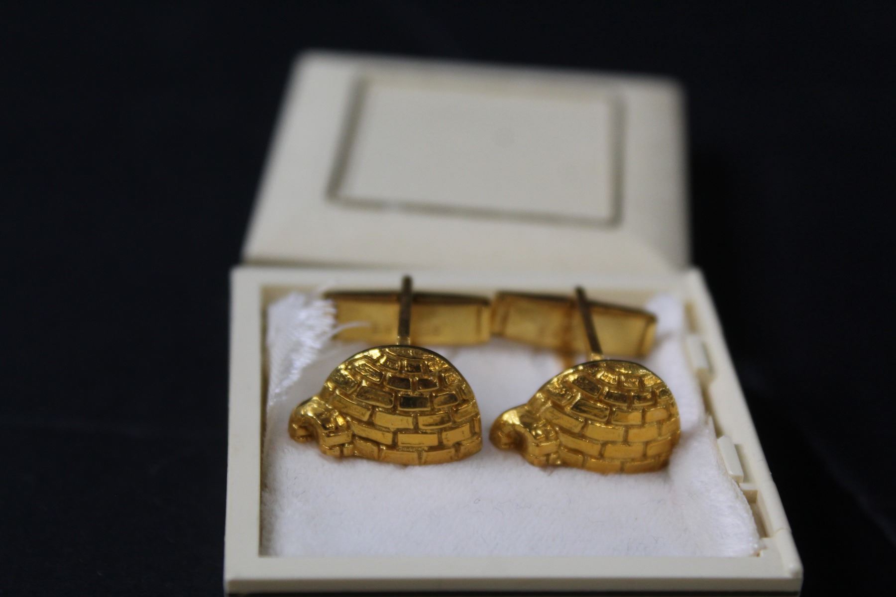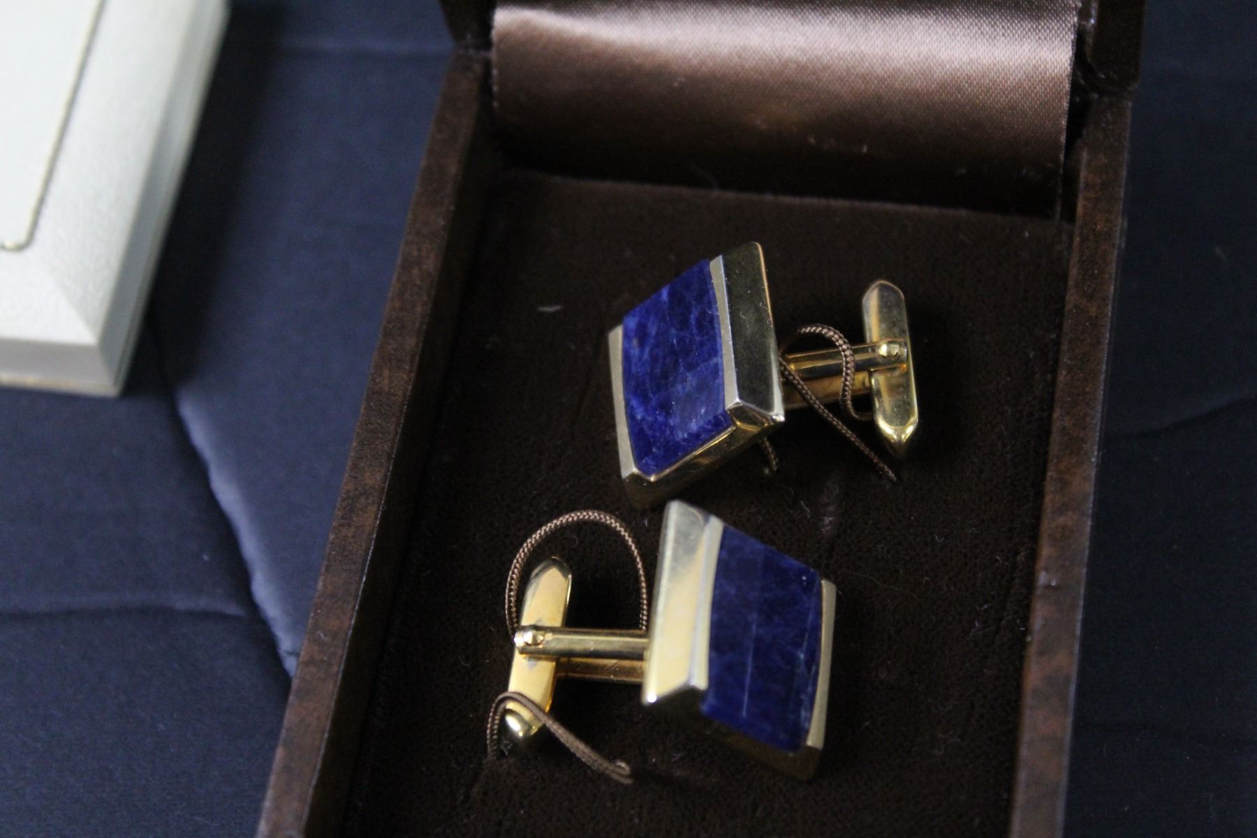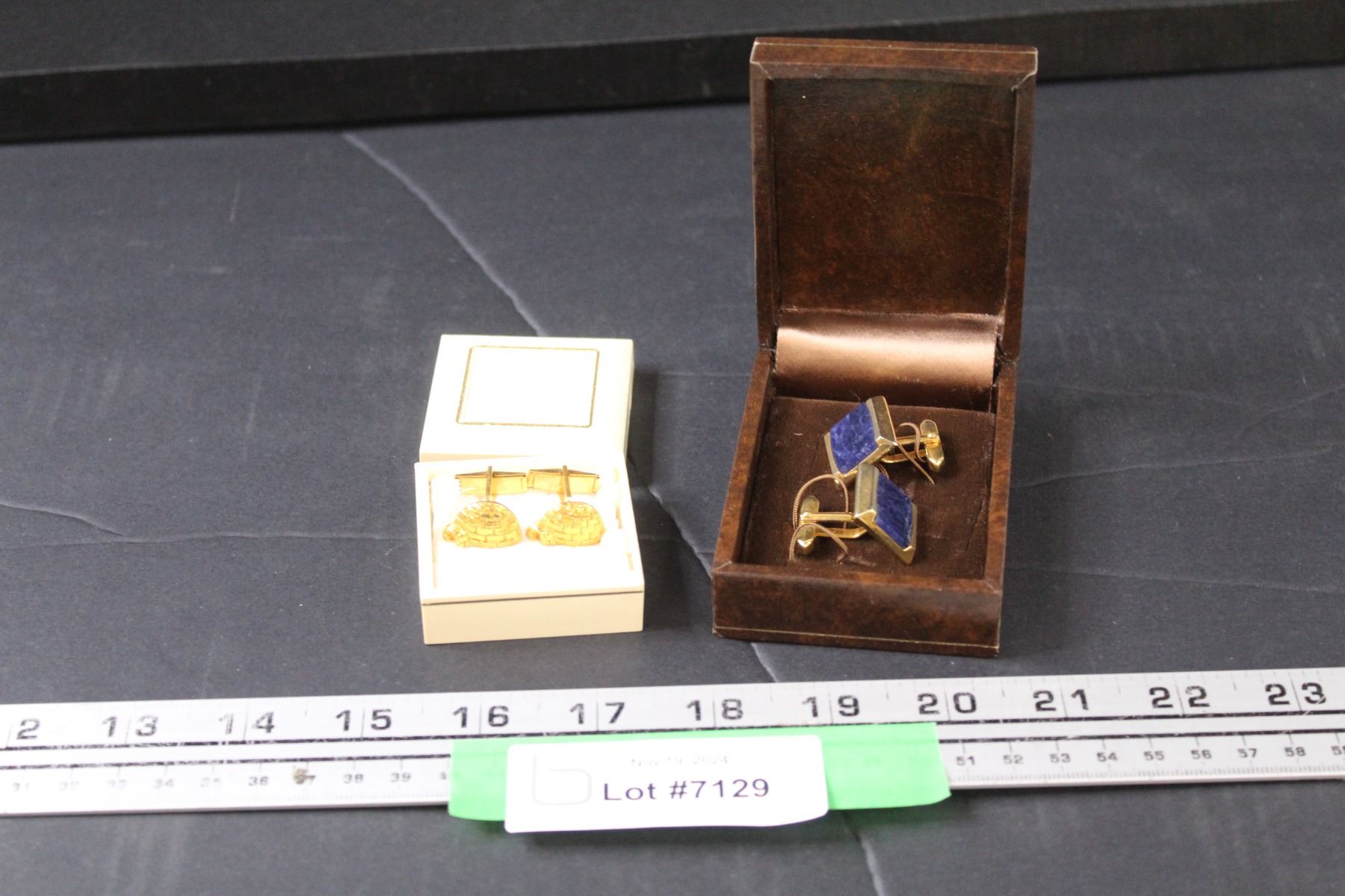 ^ Men's 10K Gold Igloo Cuff Links Set & Blue Cuff Links Set