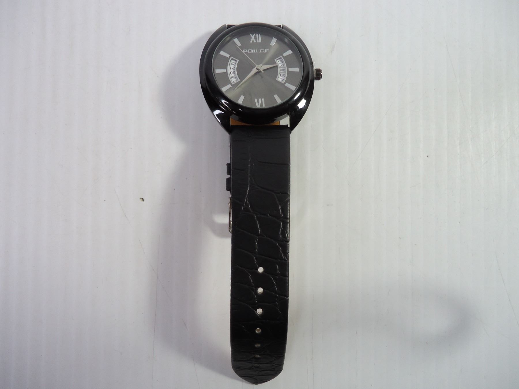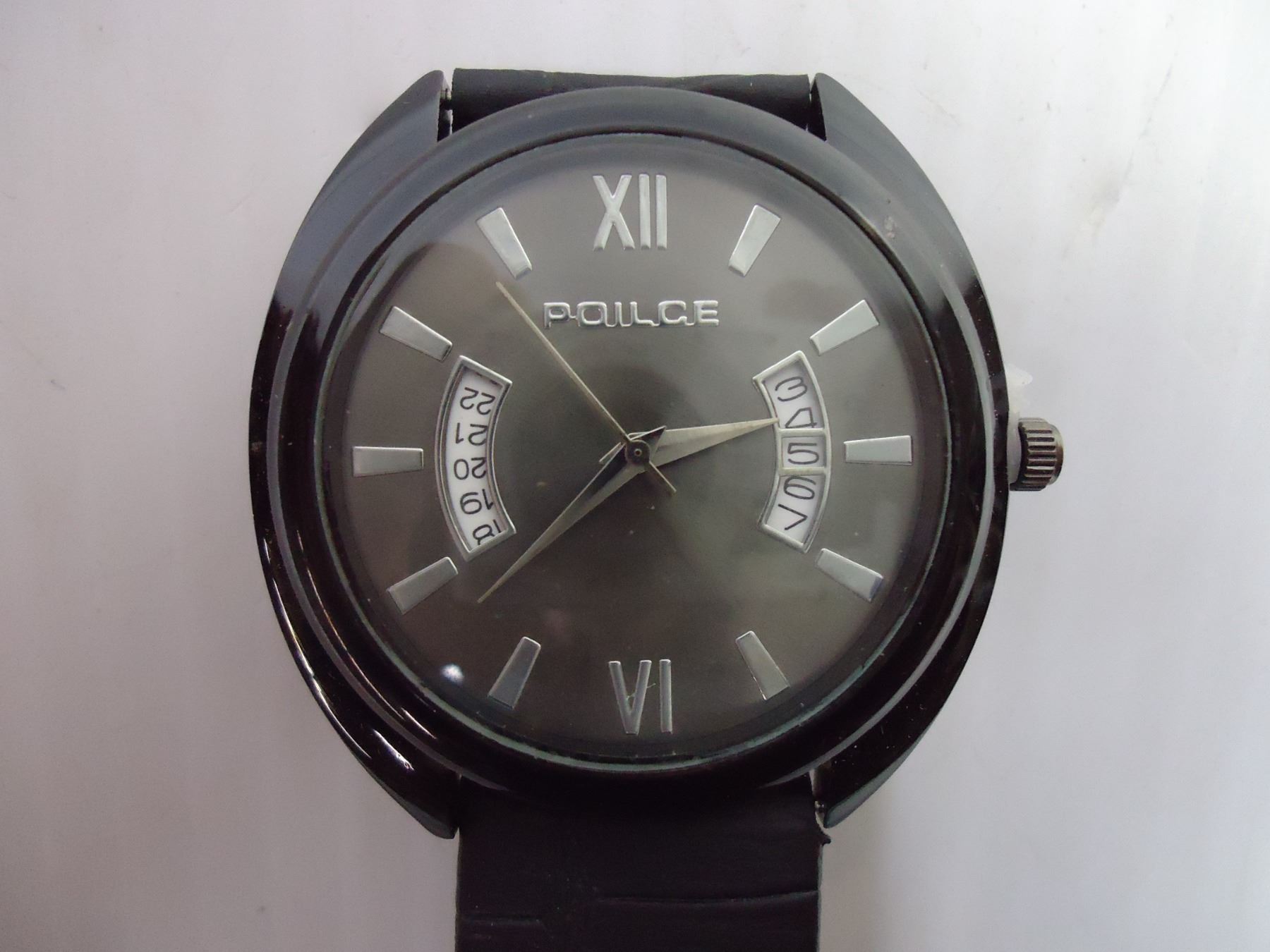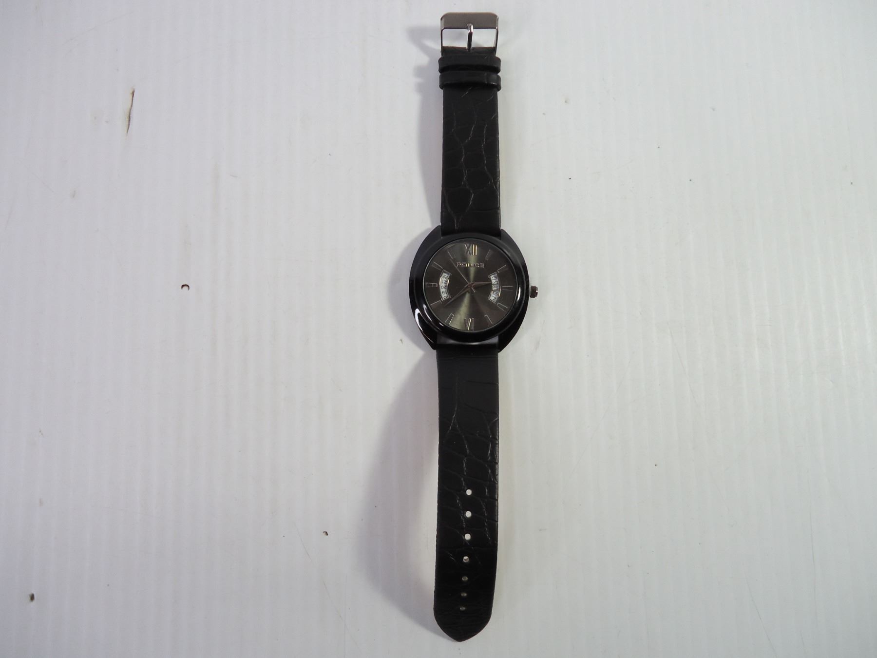 Men's Police Watch with Black Leather Band
