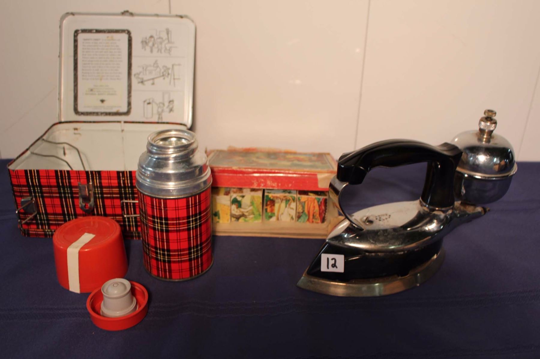 Metal Aladdin Lunch Pail, Antique Gas Iron & Puzzle Blocks