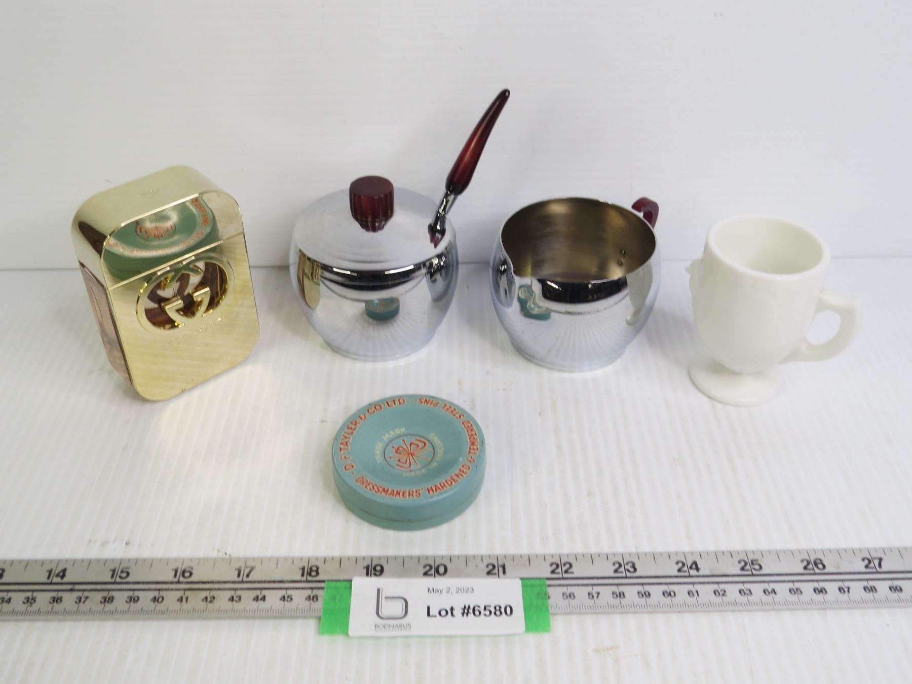 Metal Cream & Sugar Bowl - Gucci Guilty Perfume - SmTurkey Cup - Vintage Pin Tin