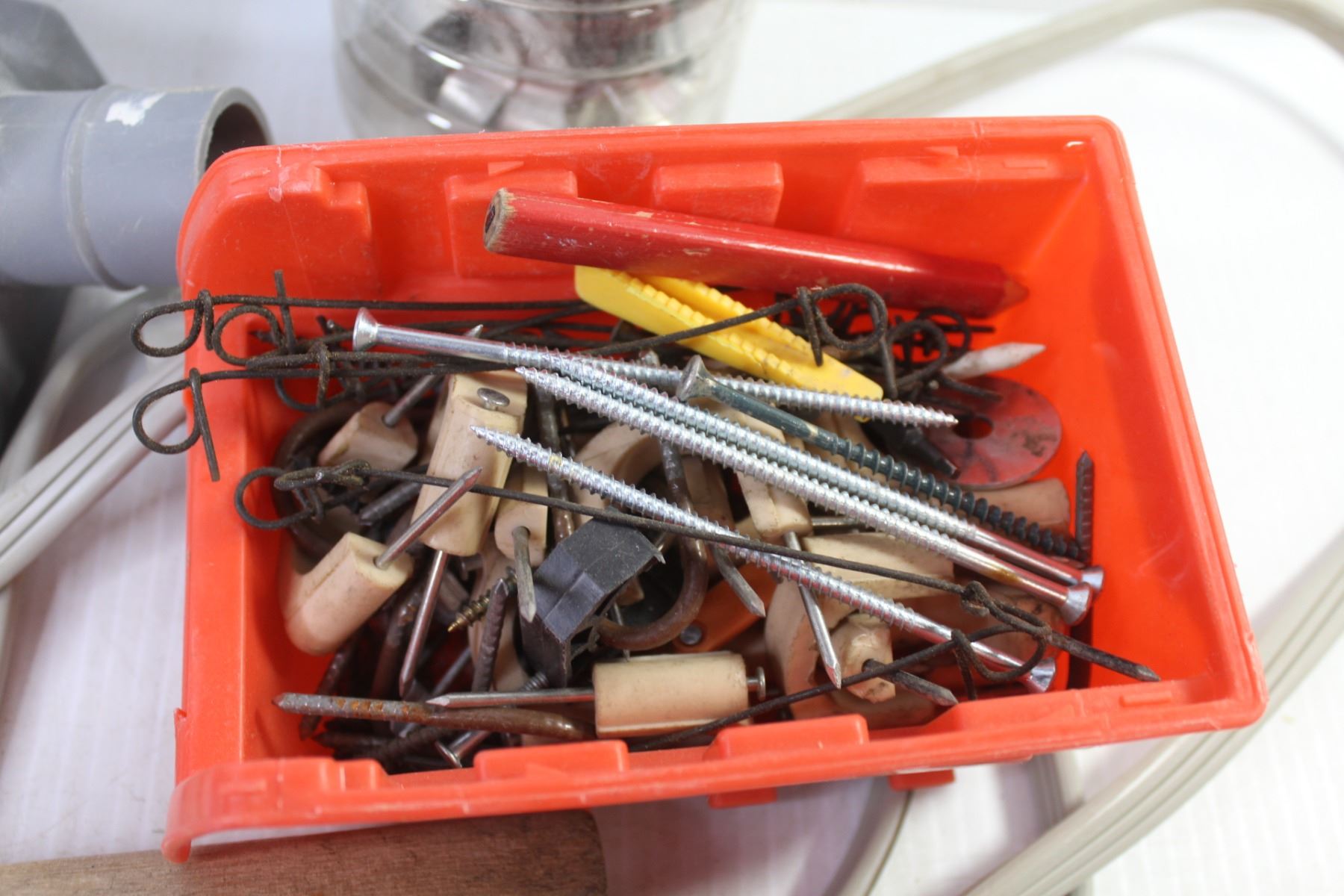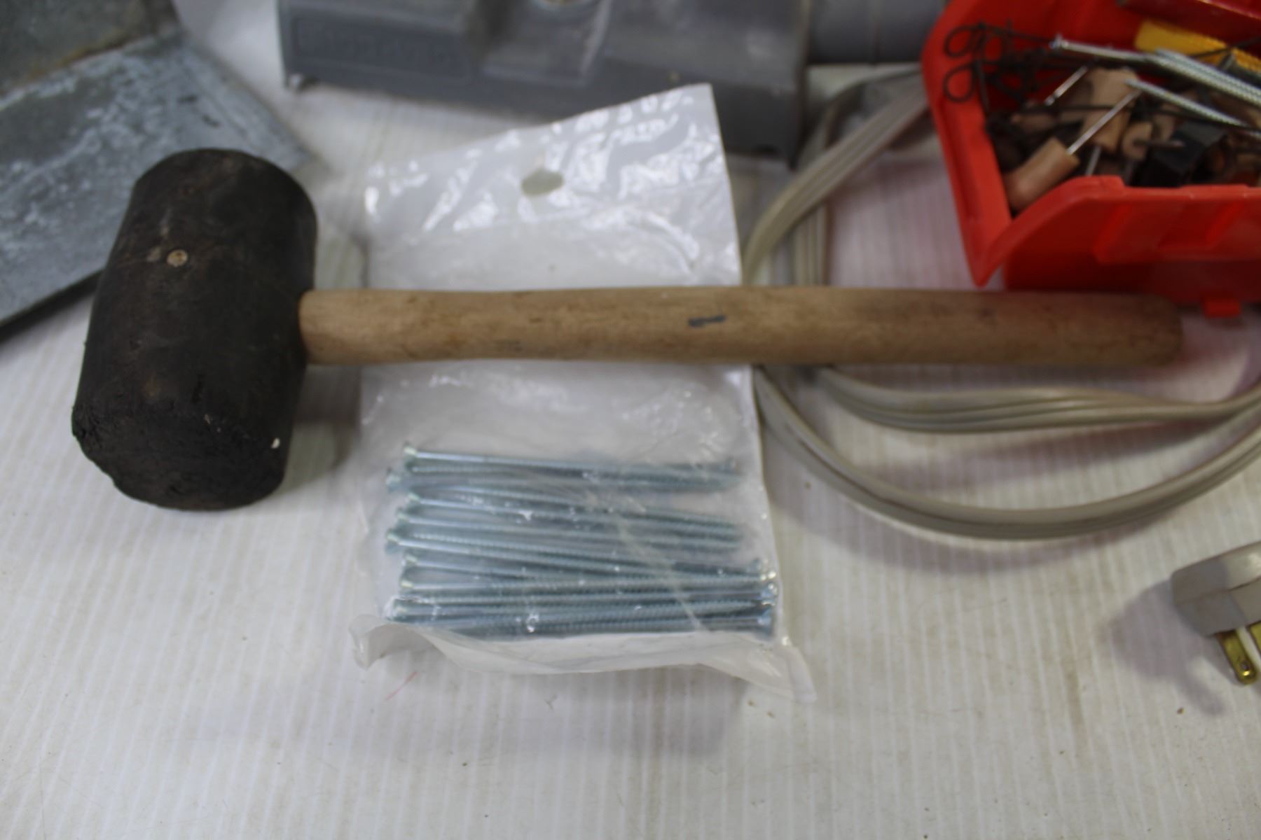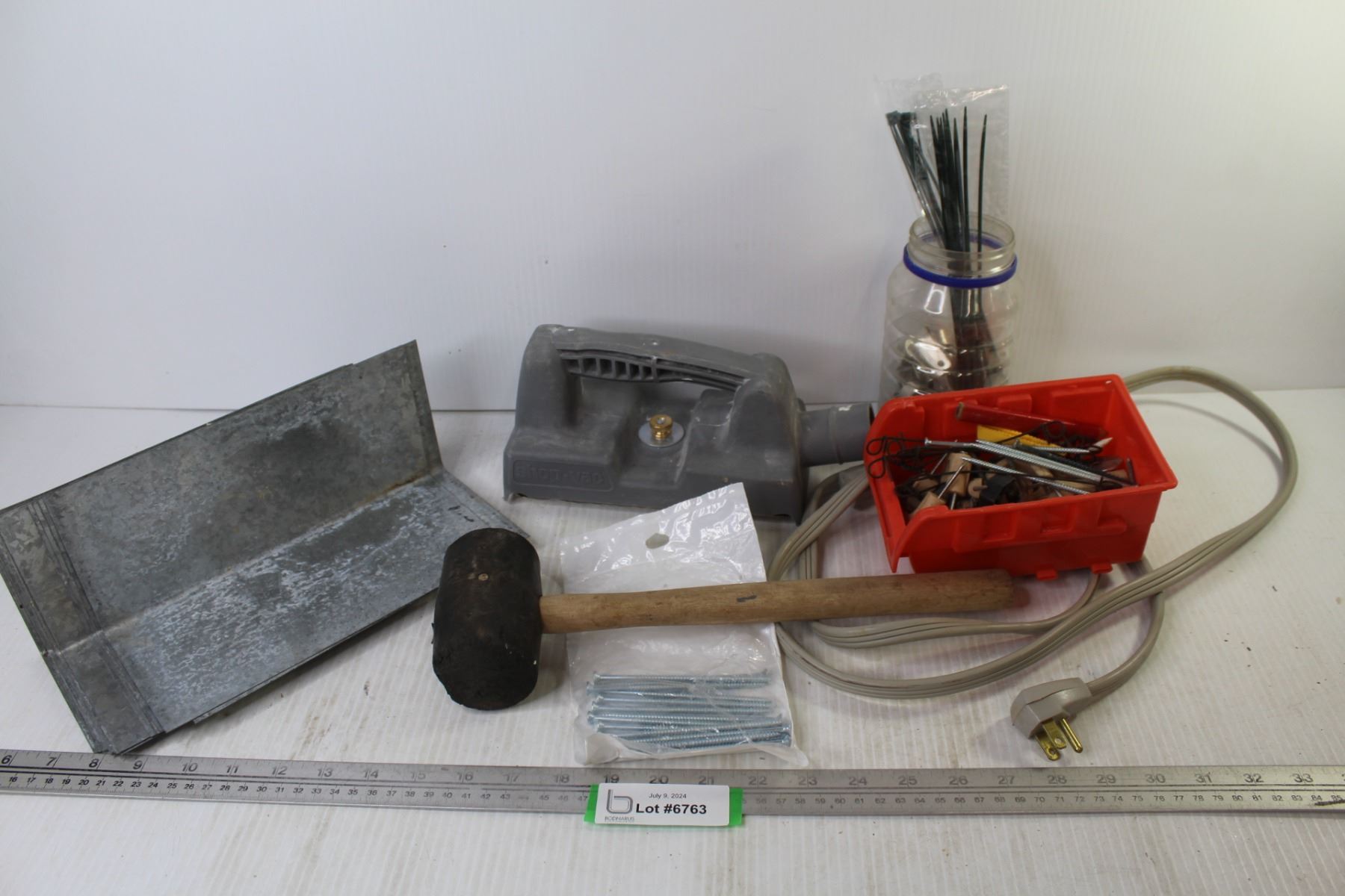 Metal Flashing (9" x 4") - Drywall Sander Attachment - Extension Cord - Screws - Pipe/Hose Clamps - Rubber Mallet
