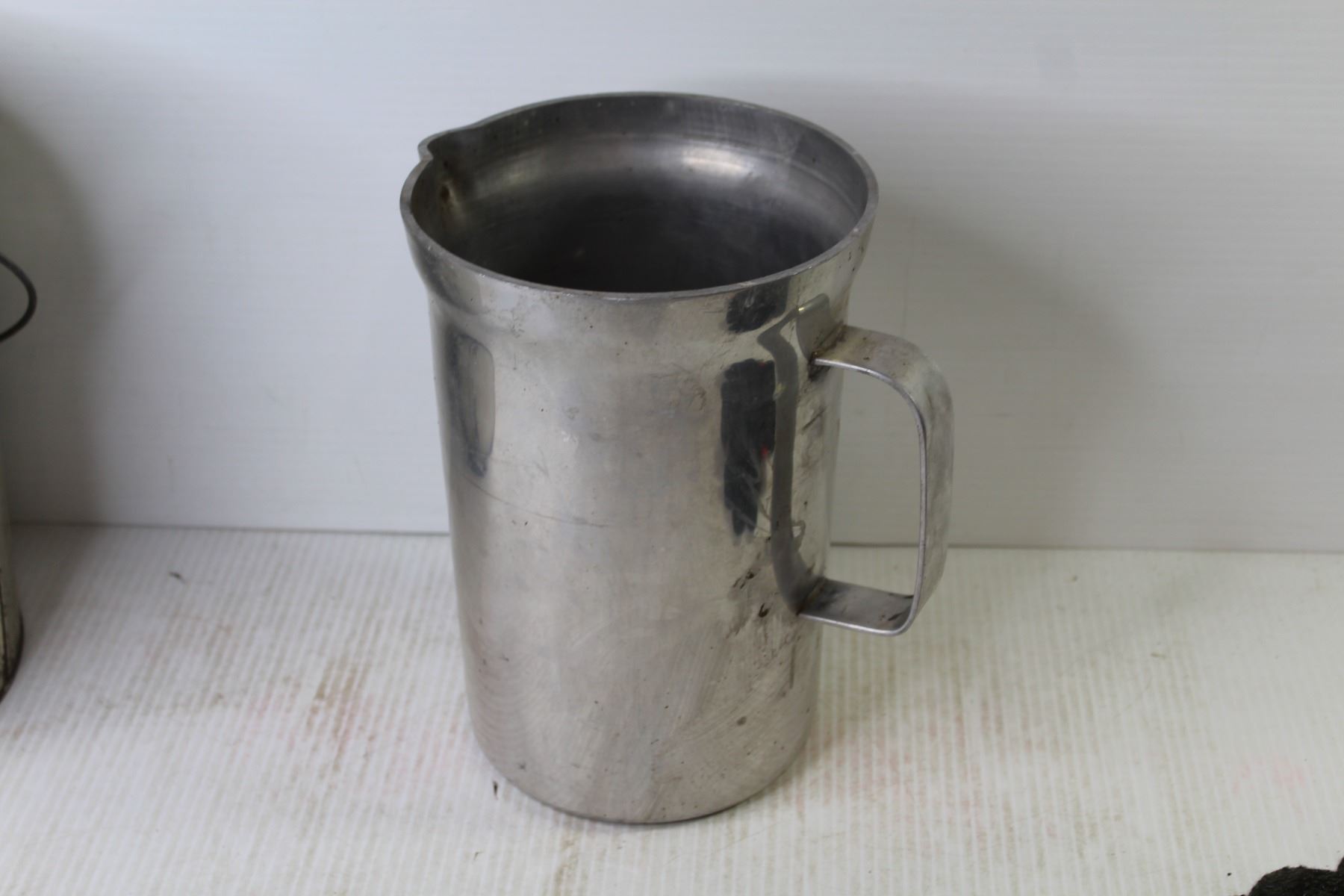 Metal Pitcher - Vintage E.D. Smith Pie Filling Tin - (2) Pair of Palm Grip Gloves
