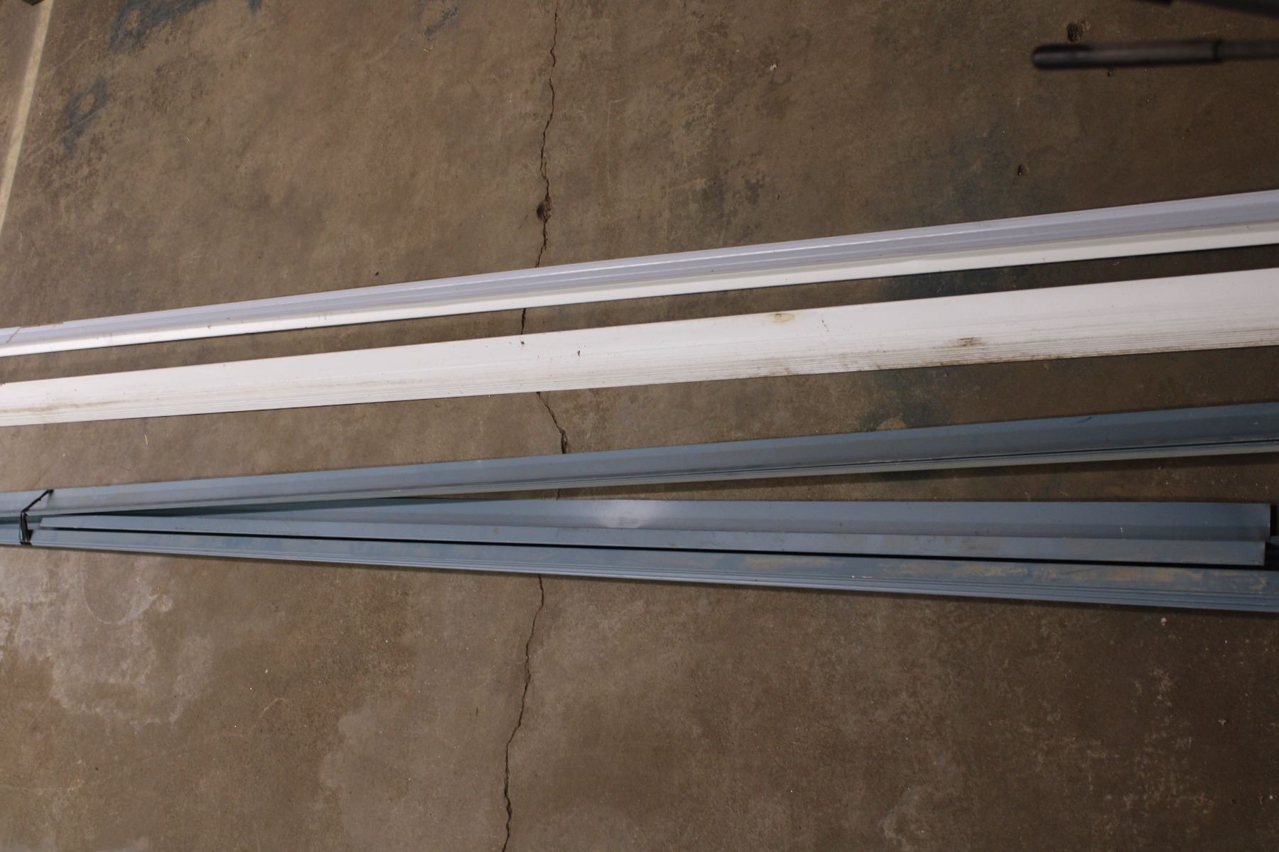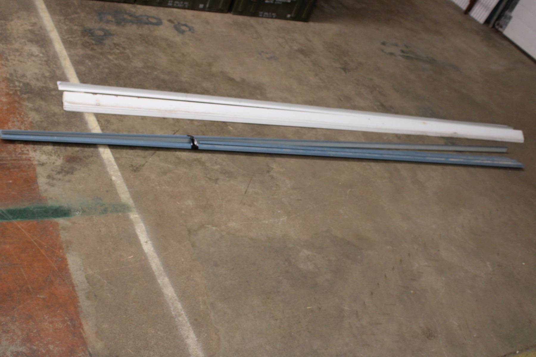 Metal Siding pieces 8xblue, 9xwhite. All 10ft long, approx 2.5” wide