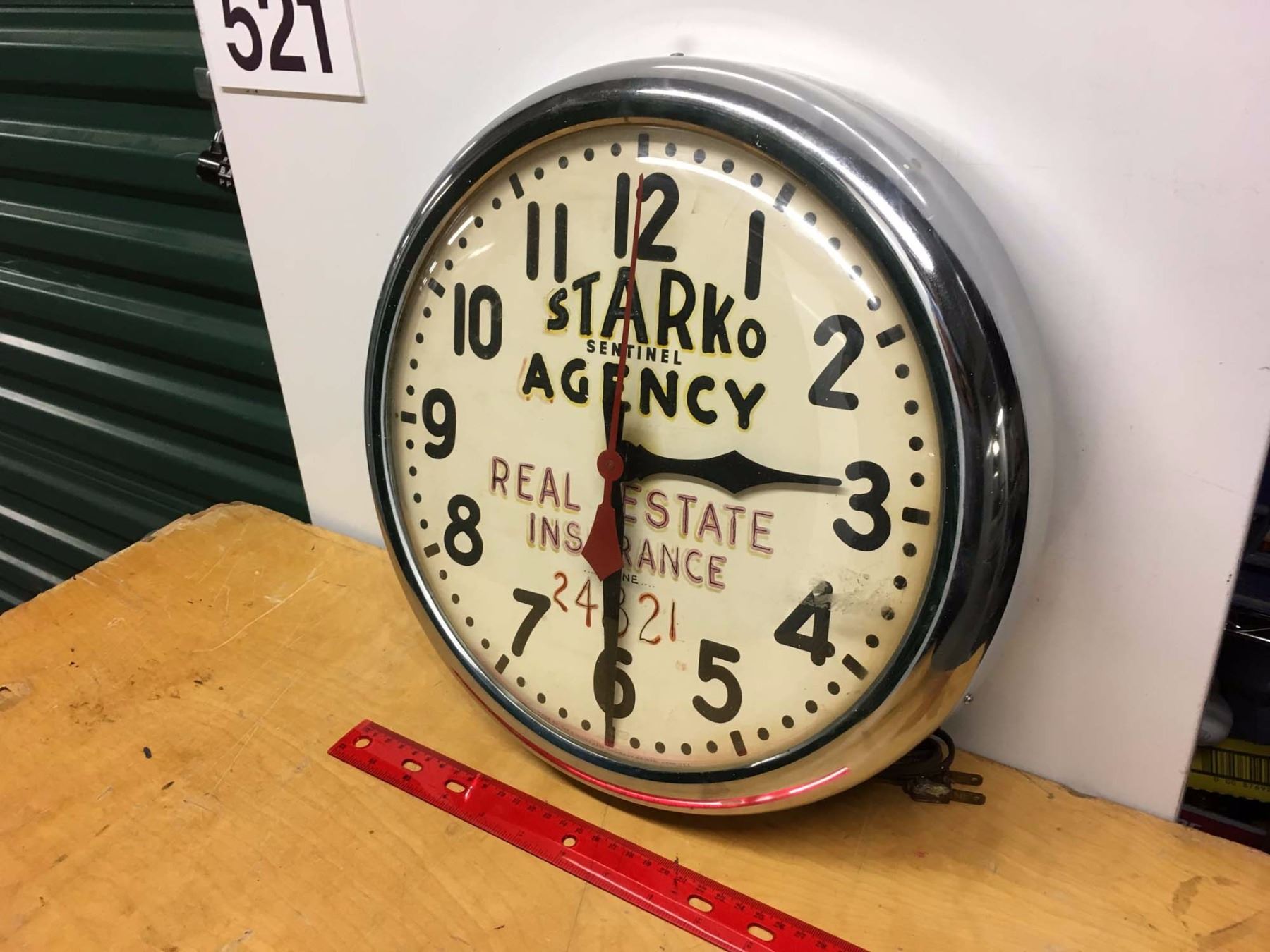 Metal Starko Sentinal Agency Clock, 14" Circumference, Real Estate Insurance, Phone 24821