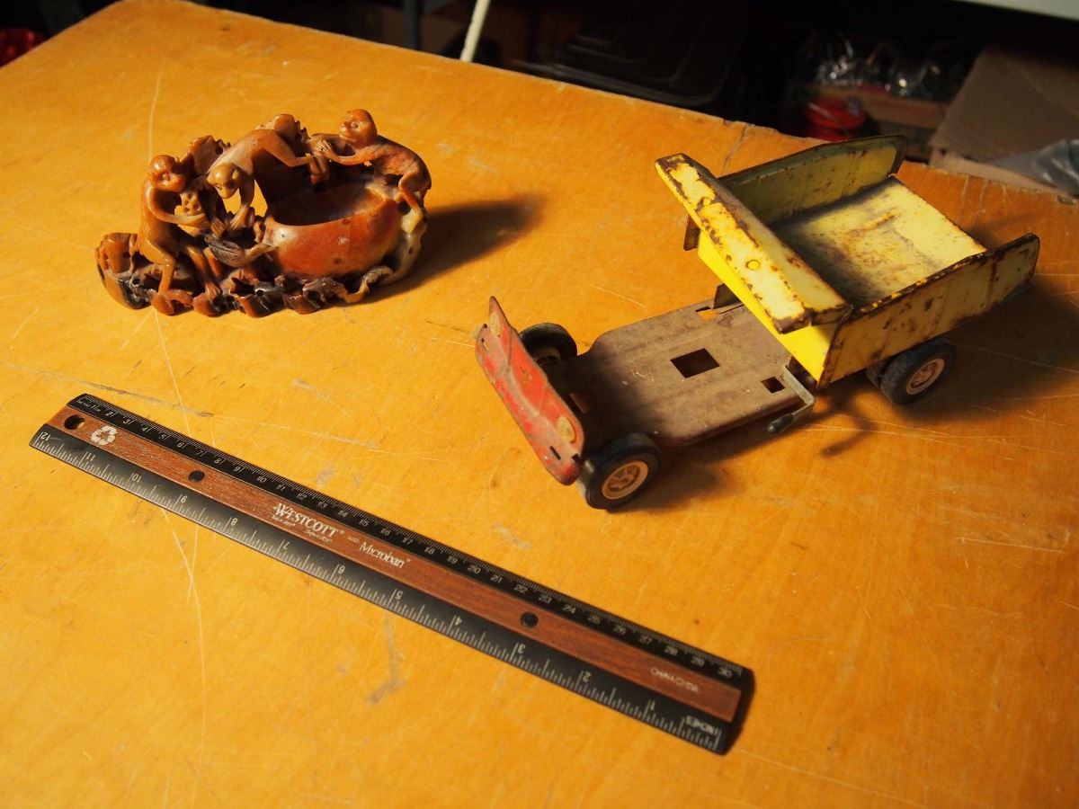 Metal Toy Truck Carcass And Caved Stone Money Mantle-piece