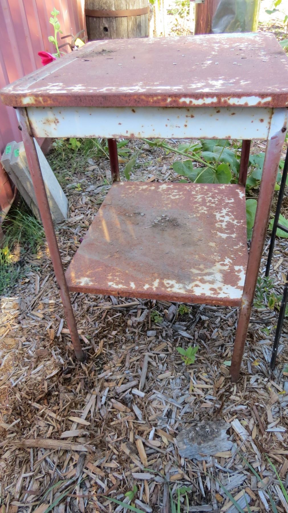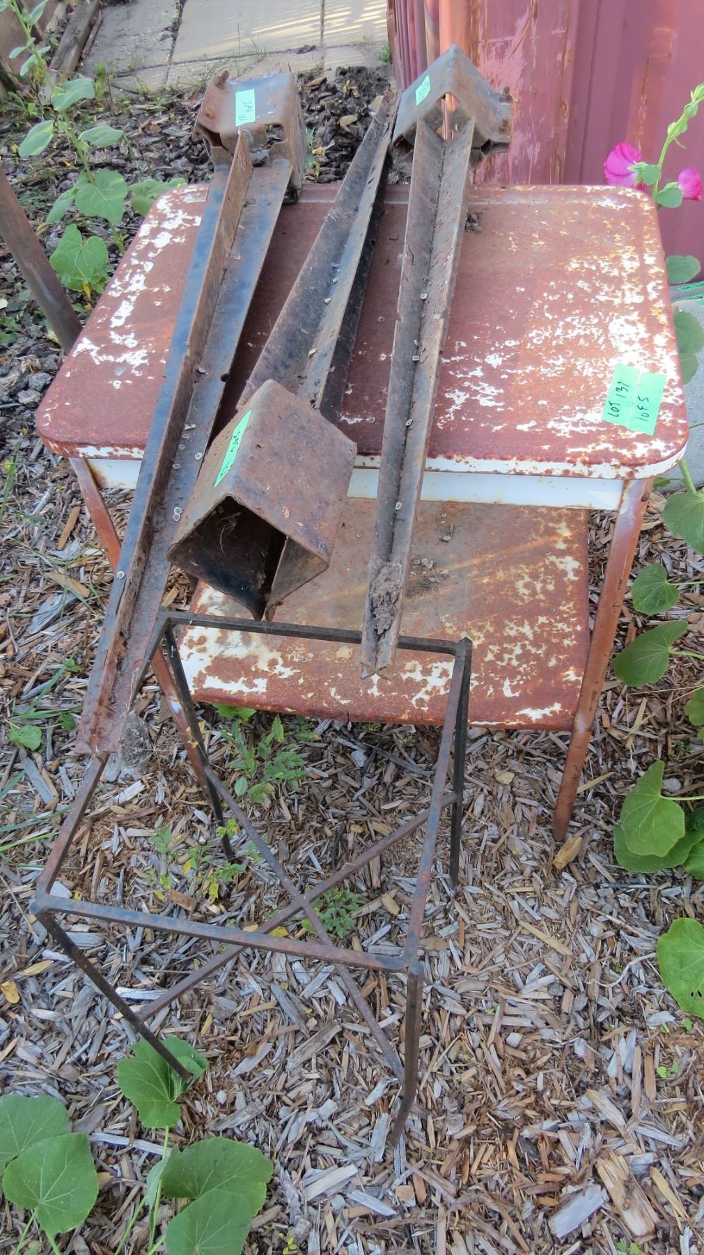 Metal table (20x24x30), deck post anchors (3.5x3.5 36"long), stands for roof peak satellite dish mounting (64" tall)