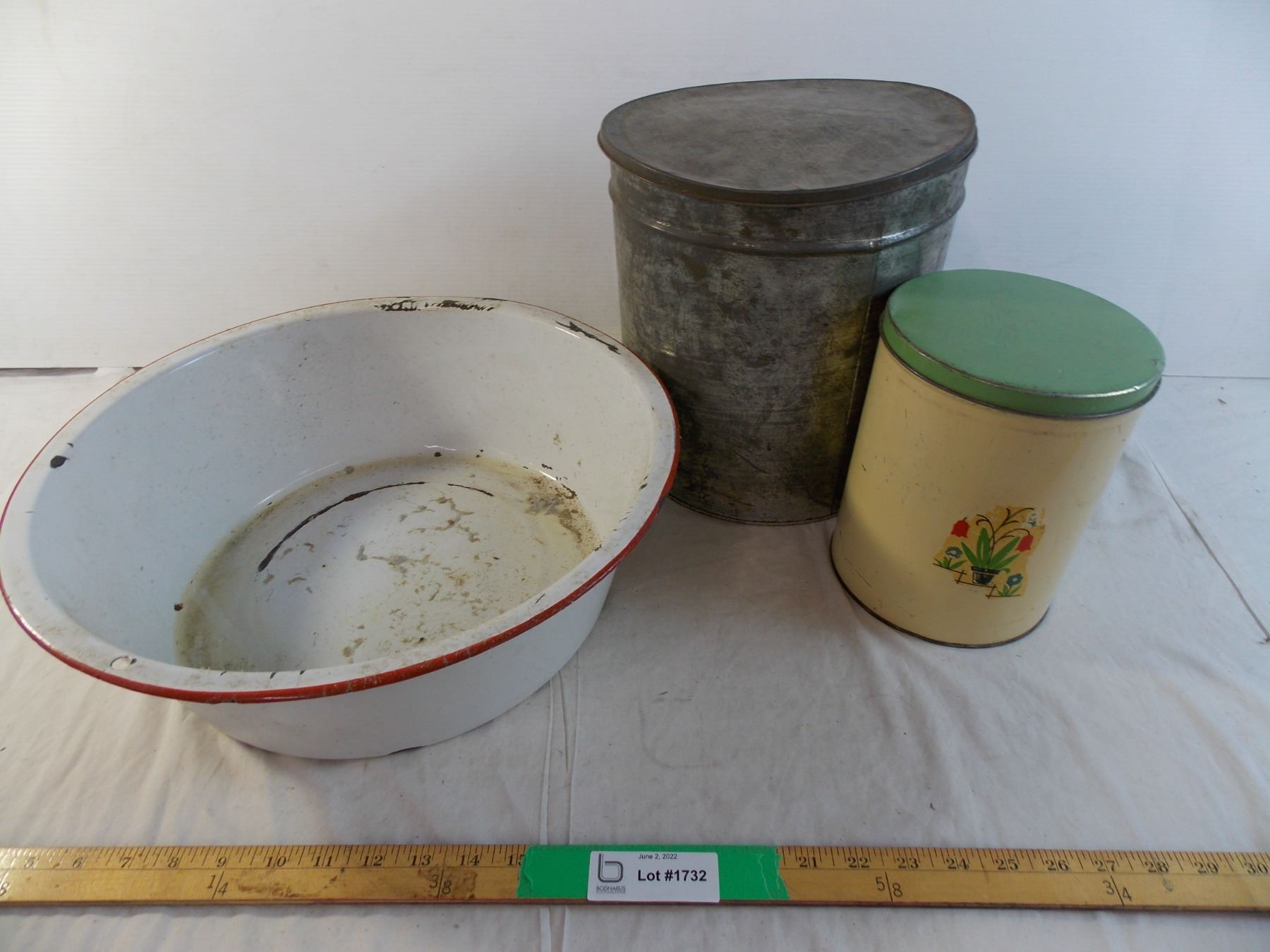 Metal wash bowl with 2 tins