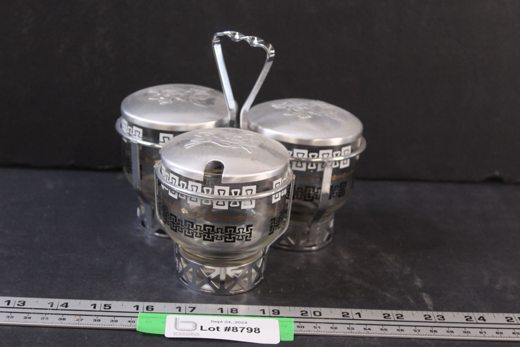 Mid-Century Libbey Glass & Silver Condiment Caddy Set (Missing Spoons)