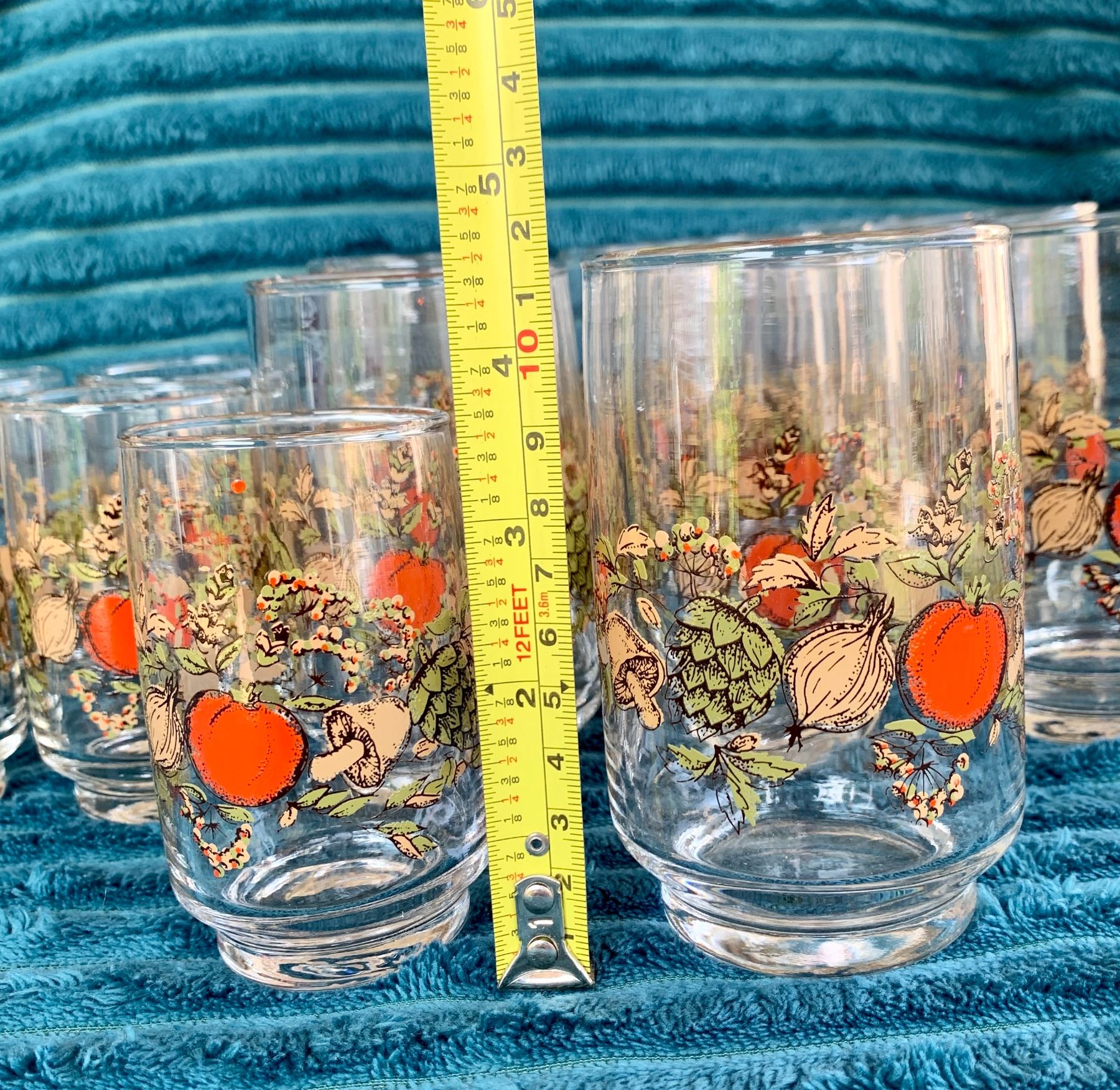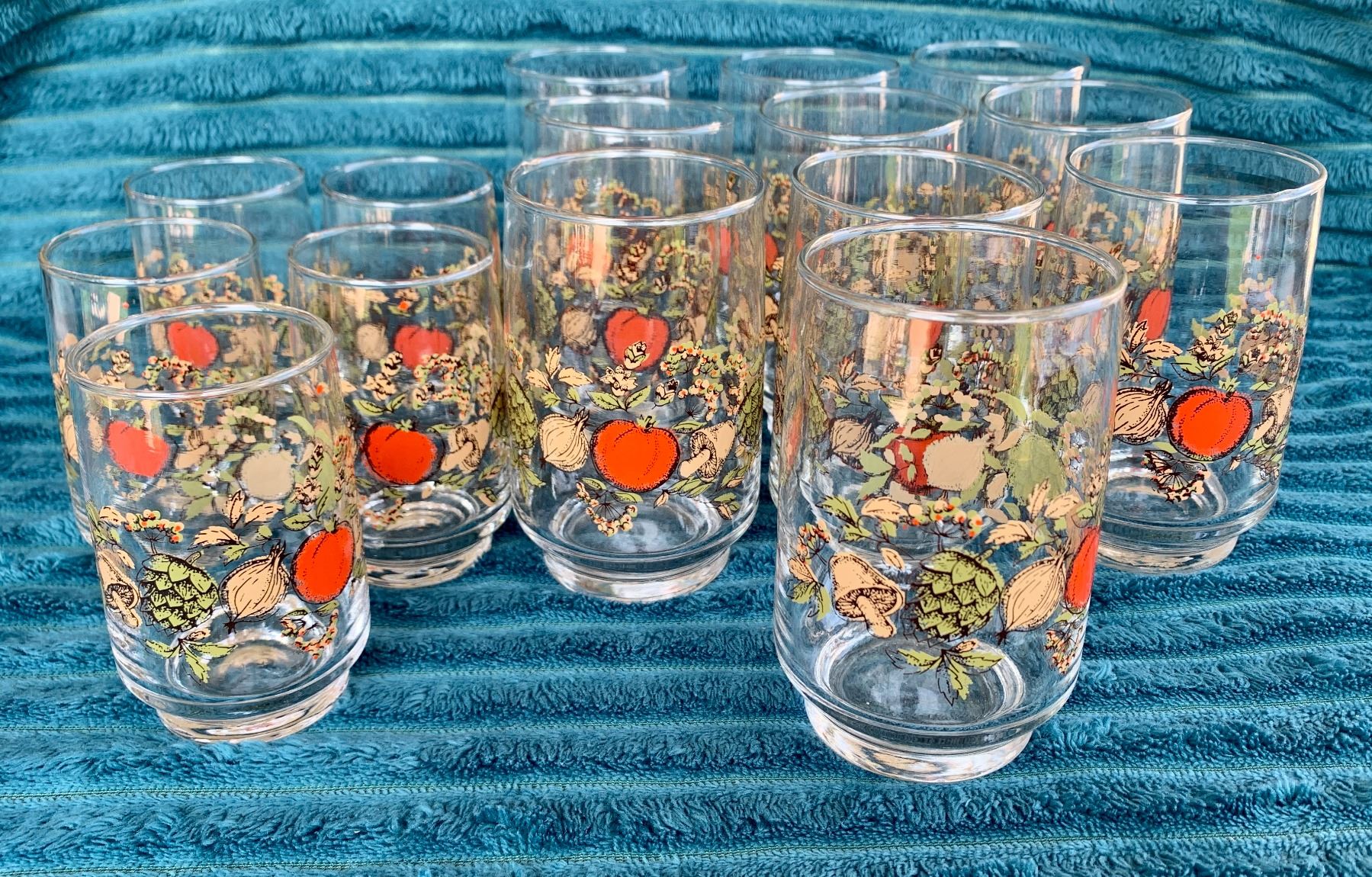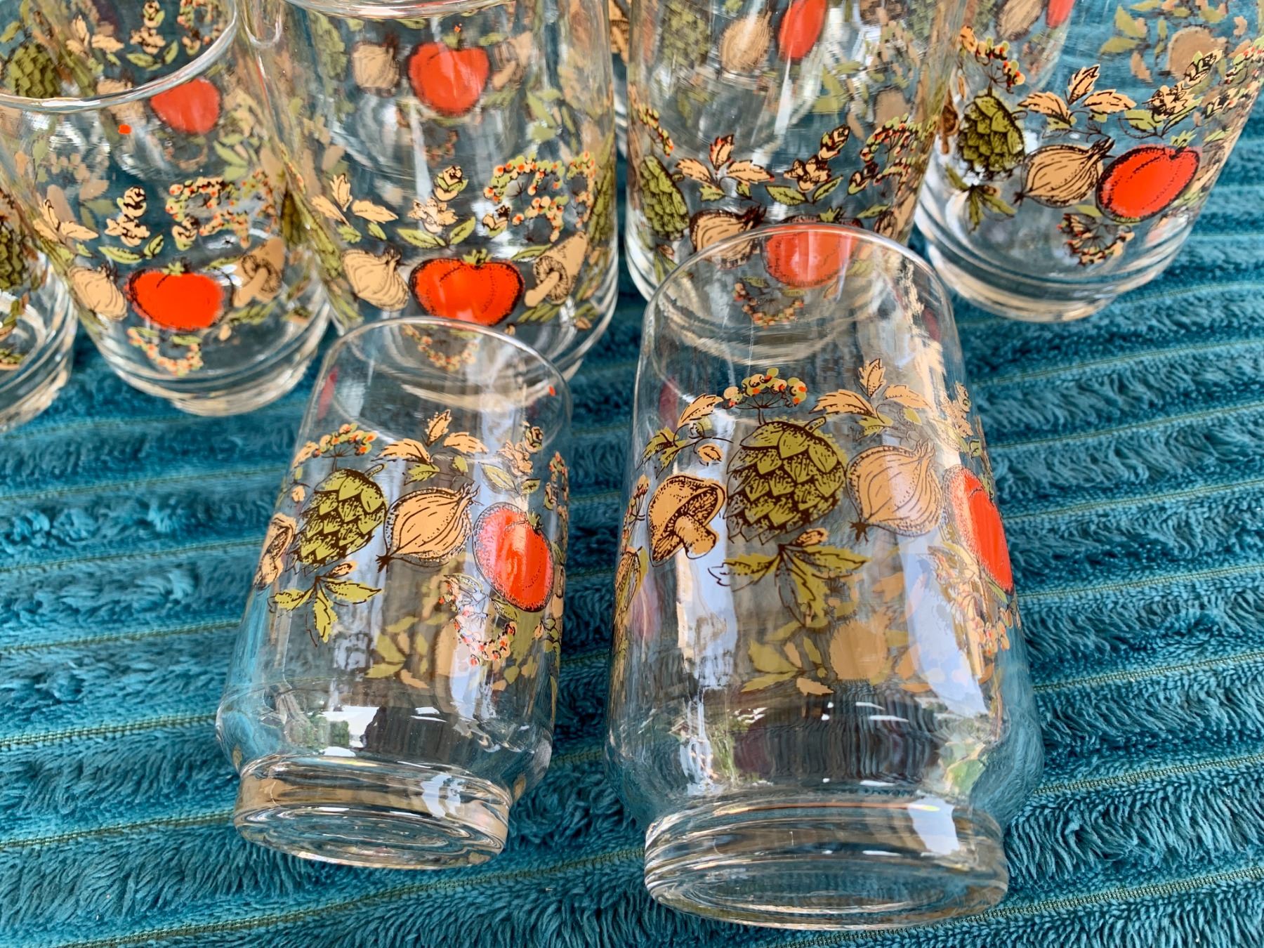 Mid Century Modern GEMCO USA "Spice of Life" (15) Glass Enameled Tumblers ([11] Water Glasses, [5] Juice Glasses)