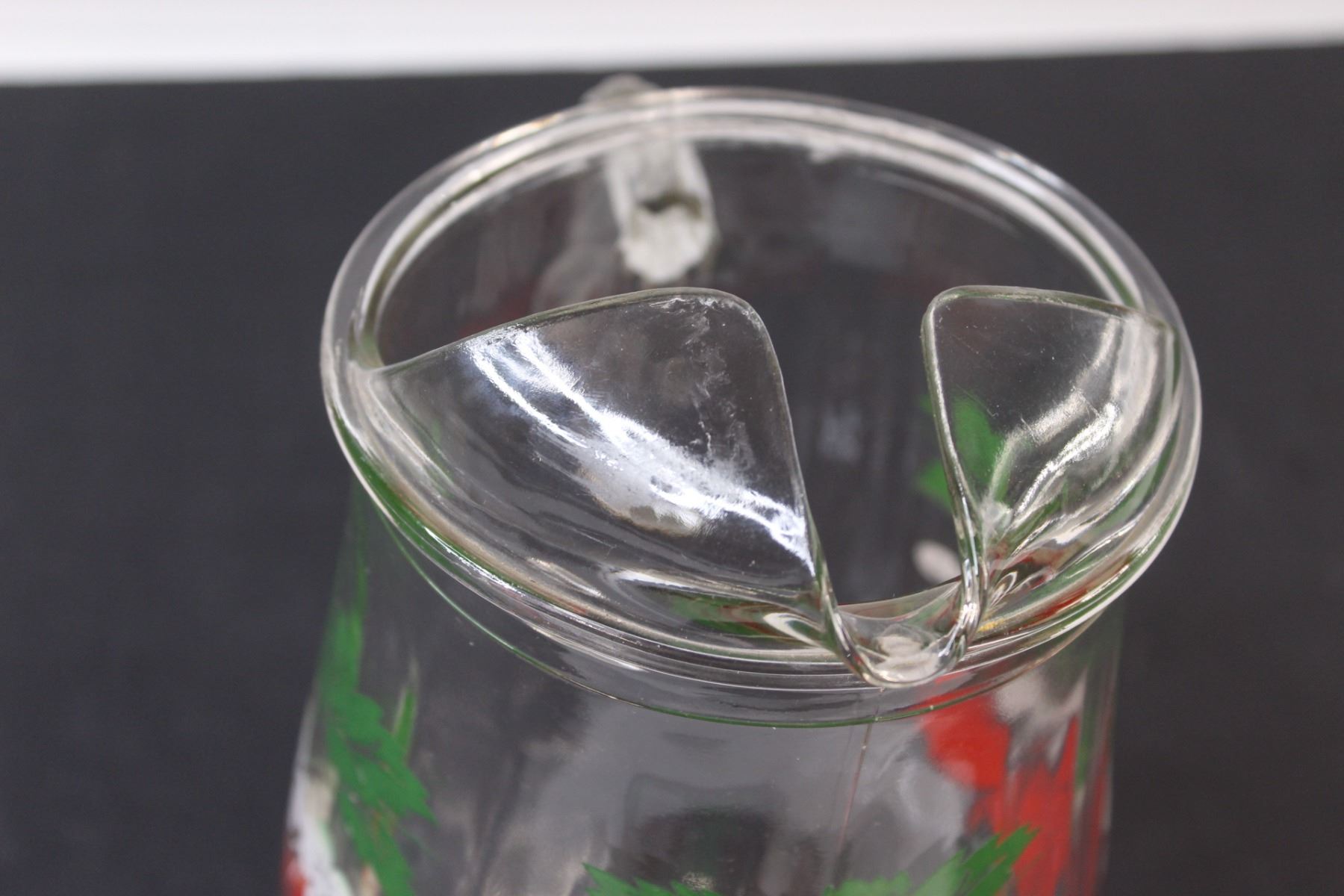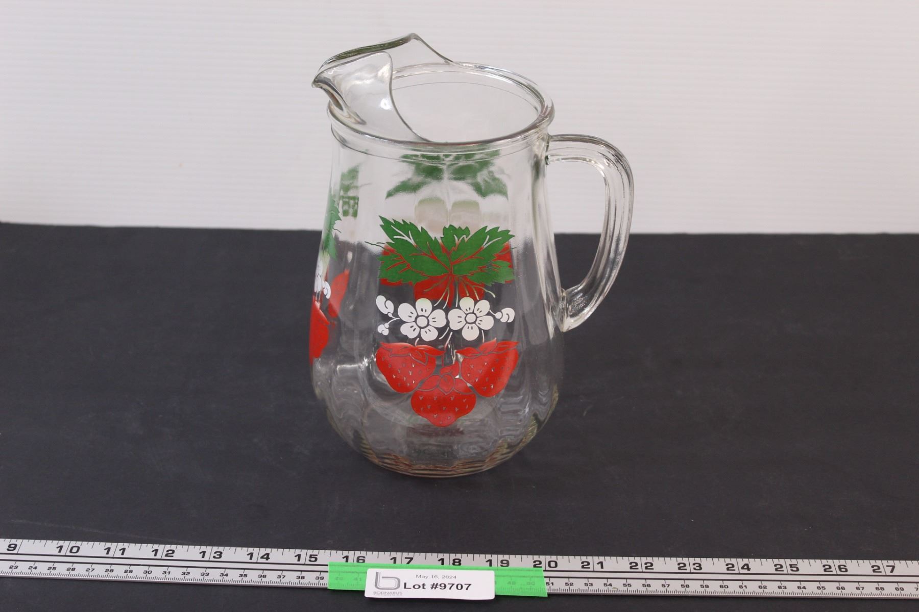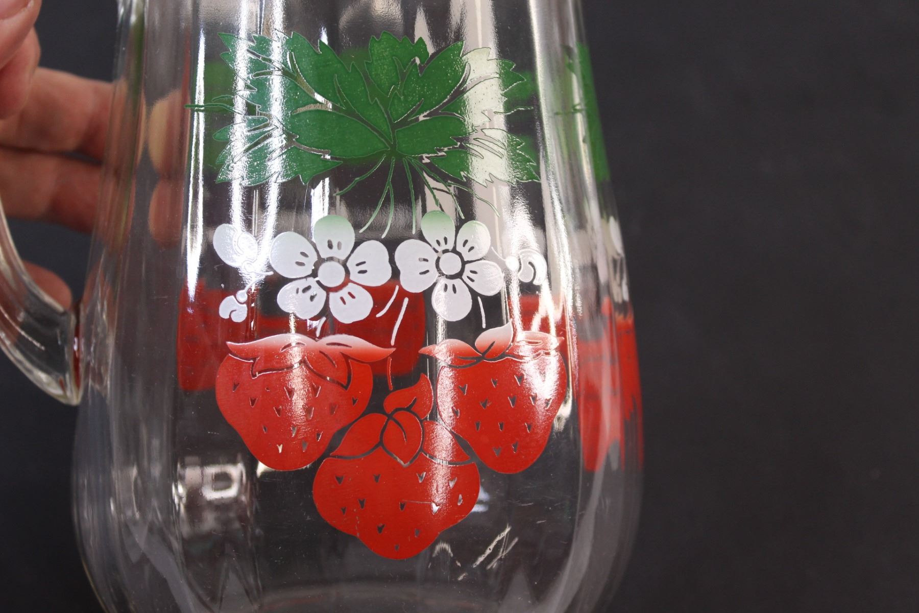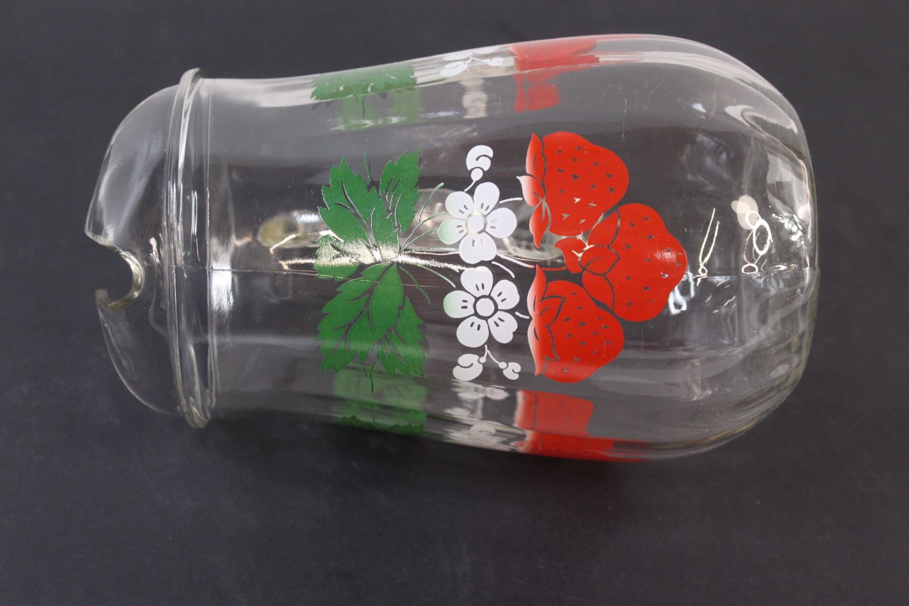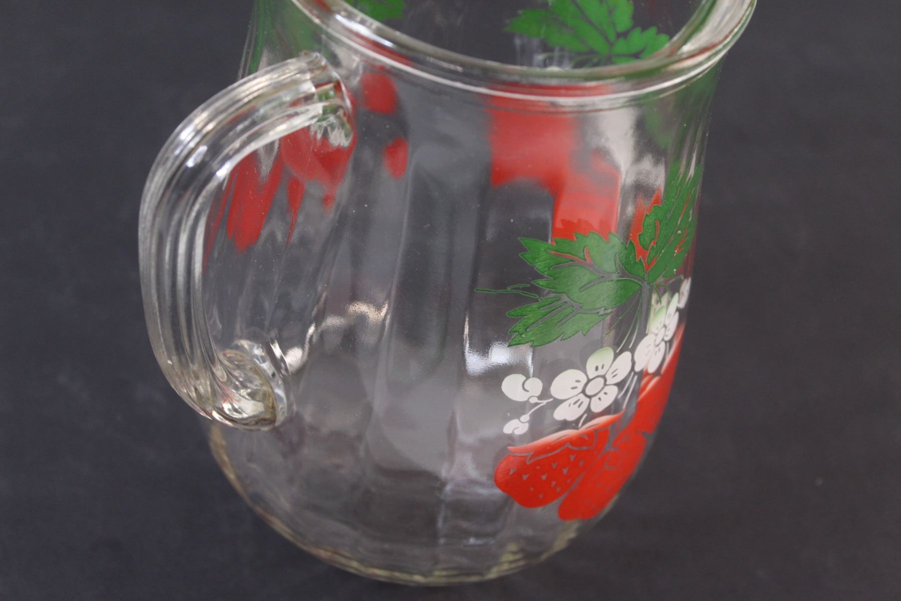 Mid Century Modern Glass Strawberry Enameled Large Water Pitcher