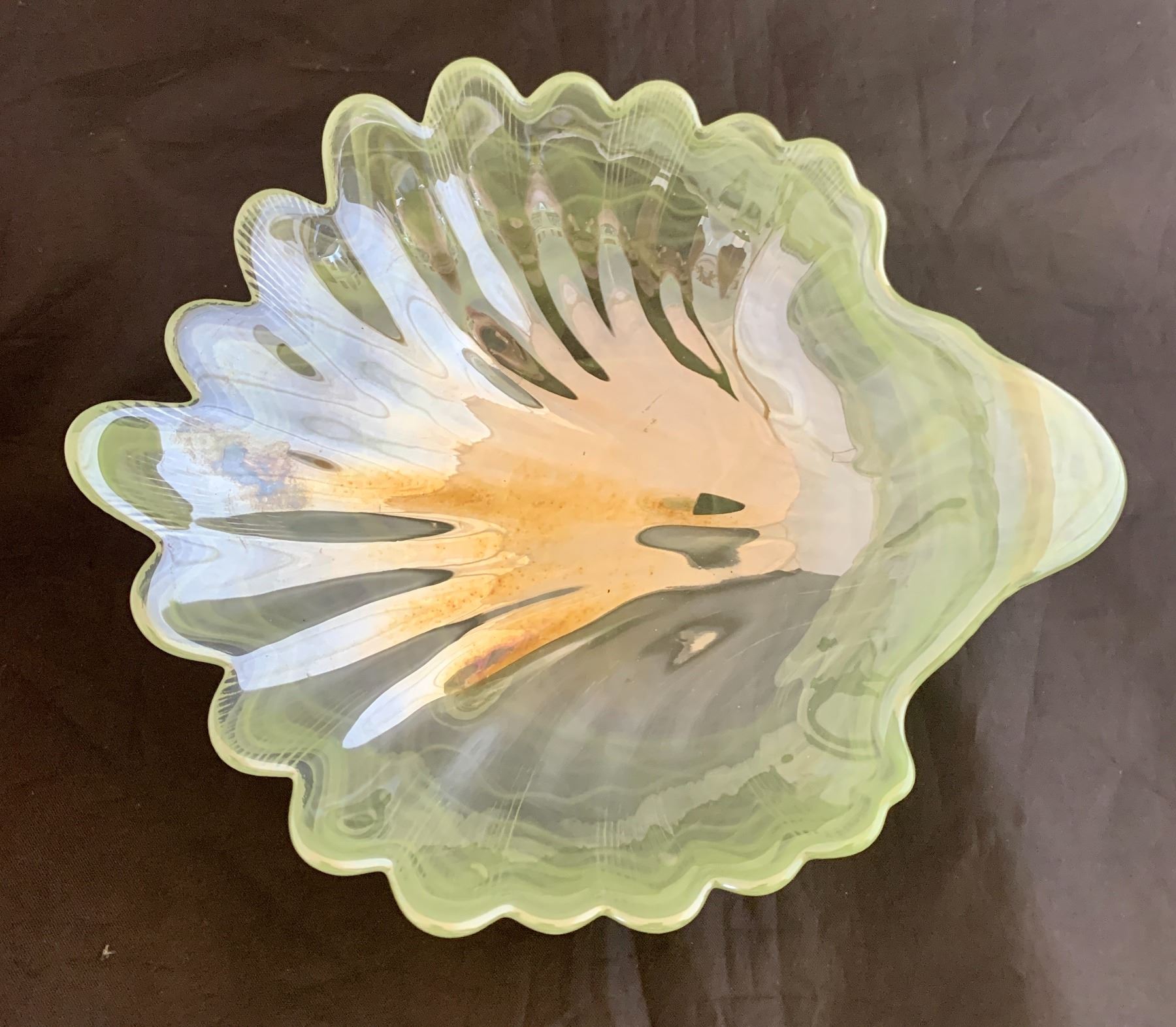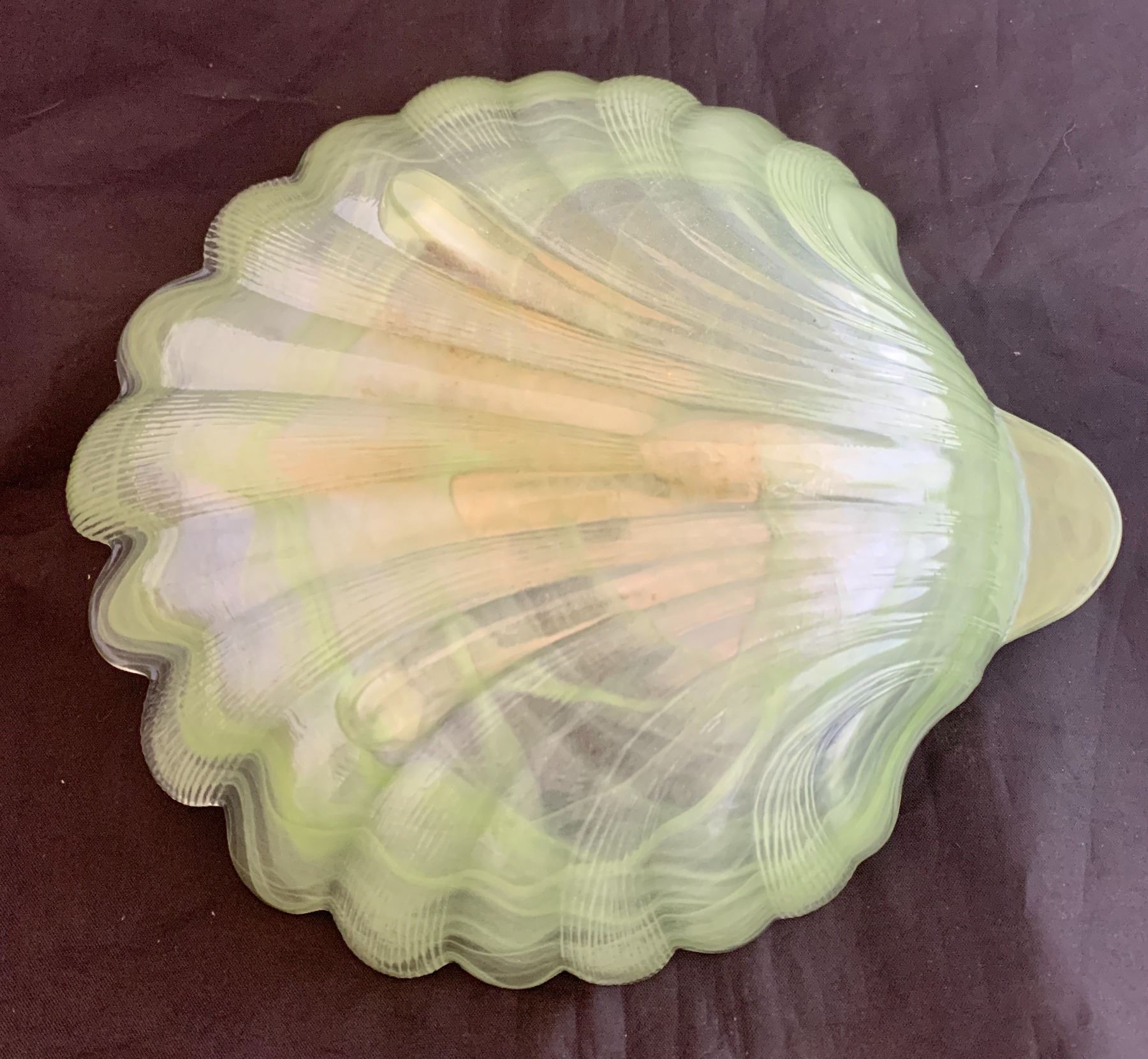 Mid-century Modern Art Glass 1960s Seashell Candy Dish Jade Slag
