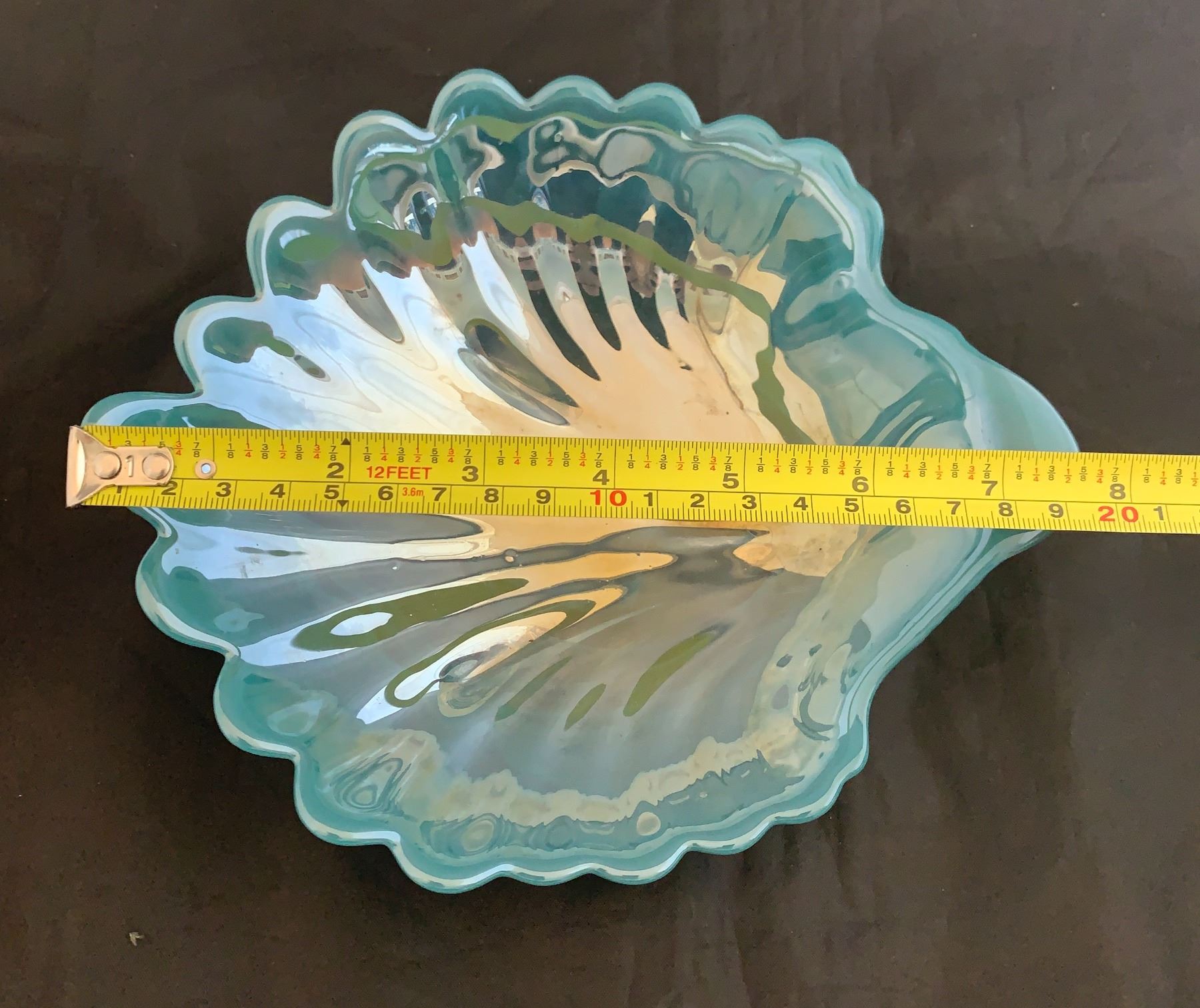 Mid-century Modern Art Glass 1960s Seashell Candy Dish Teal Blue Slag
