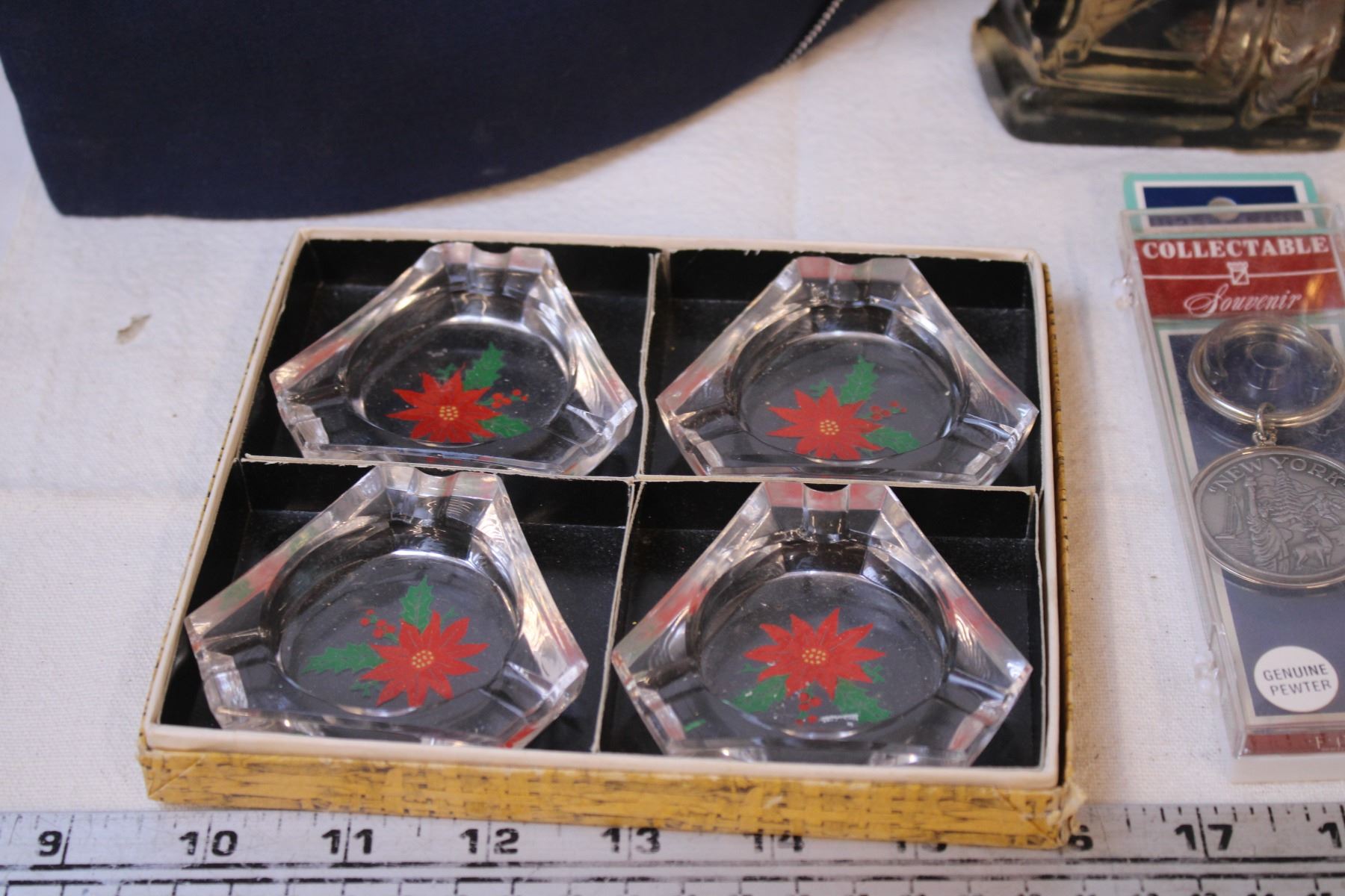 Military Hat, Christmas Ashtrays, Salt & Pepper Shakers, Clock +Misc