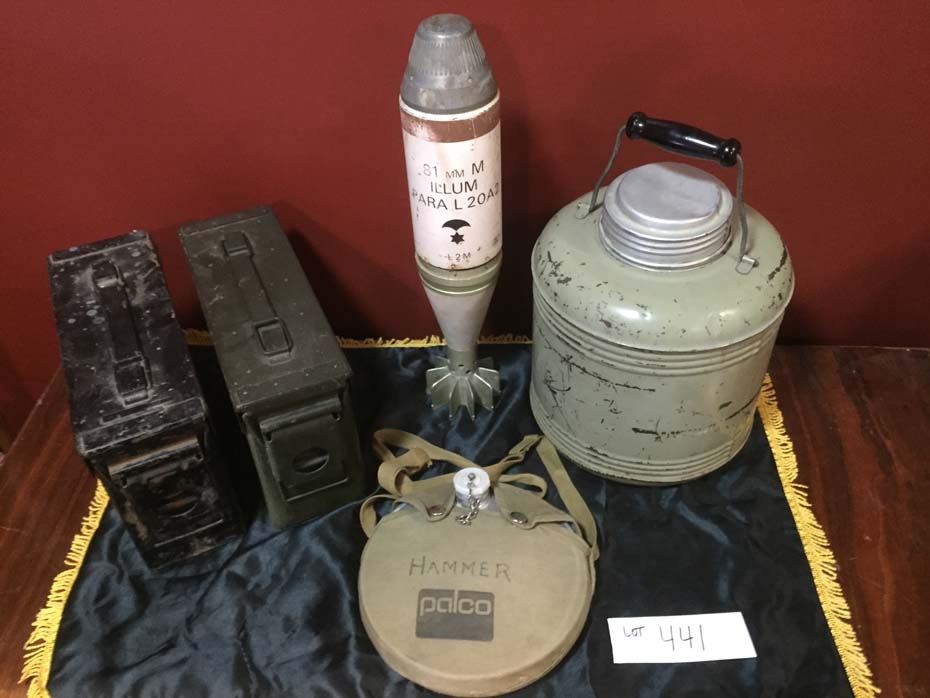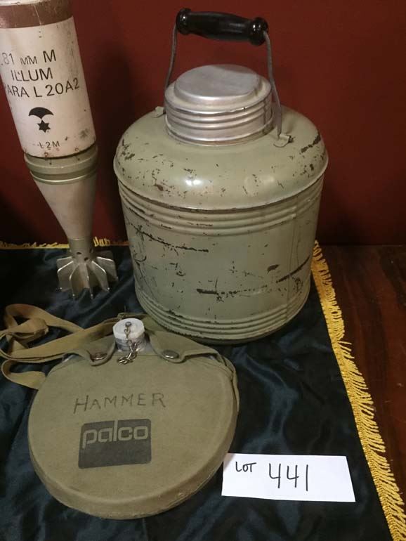 Canteen, ammo boxes-2, parachute bomb, water jug
