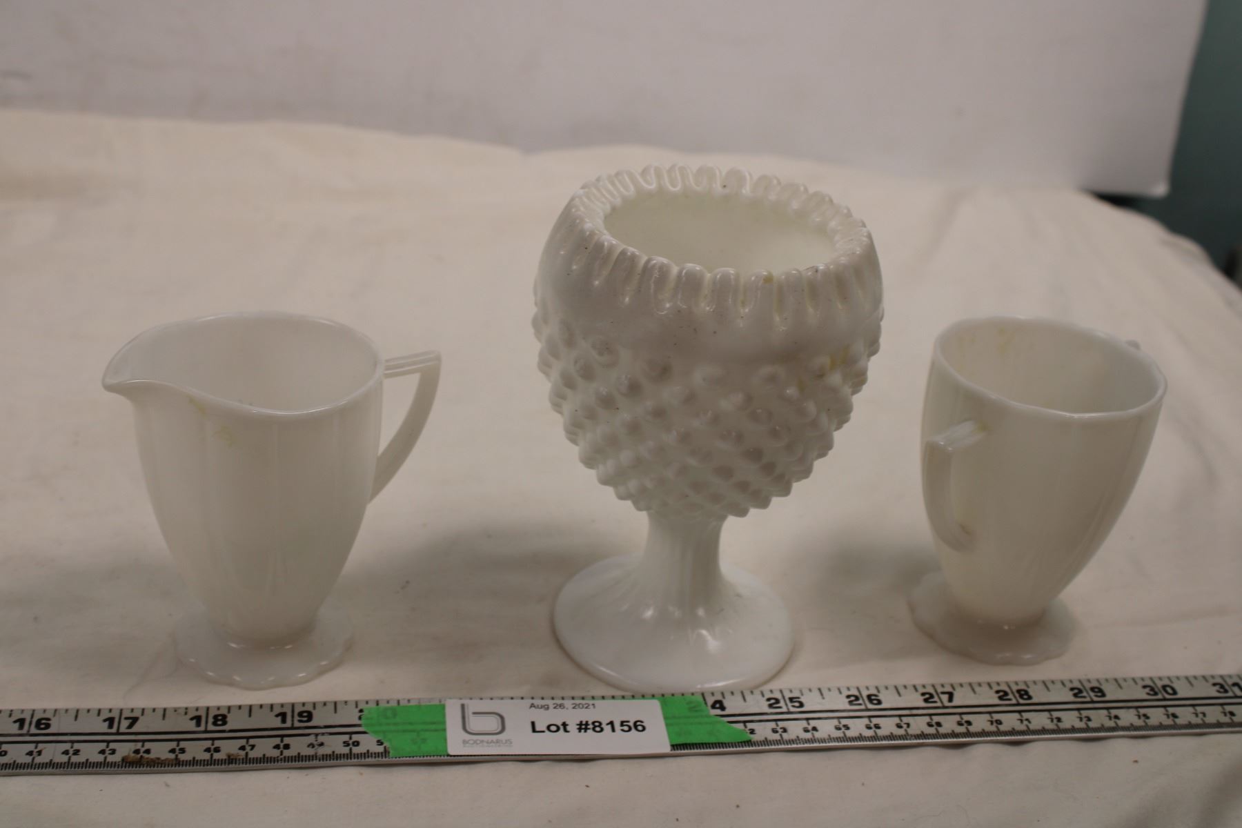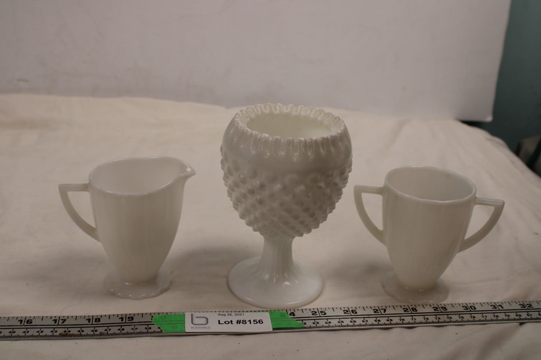 Milk Glass ceramics - cream + sugar + misc vase