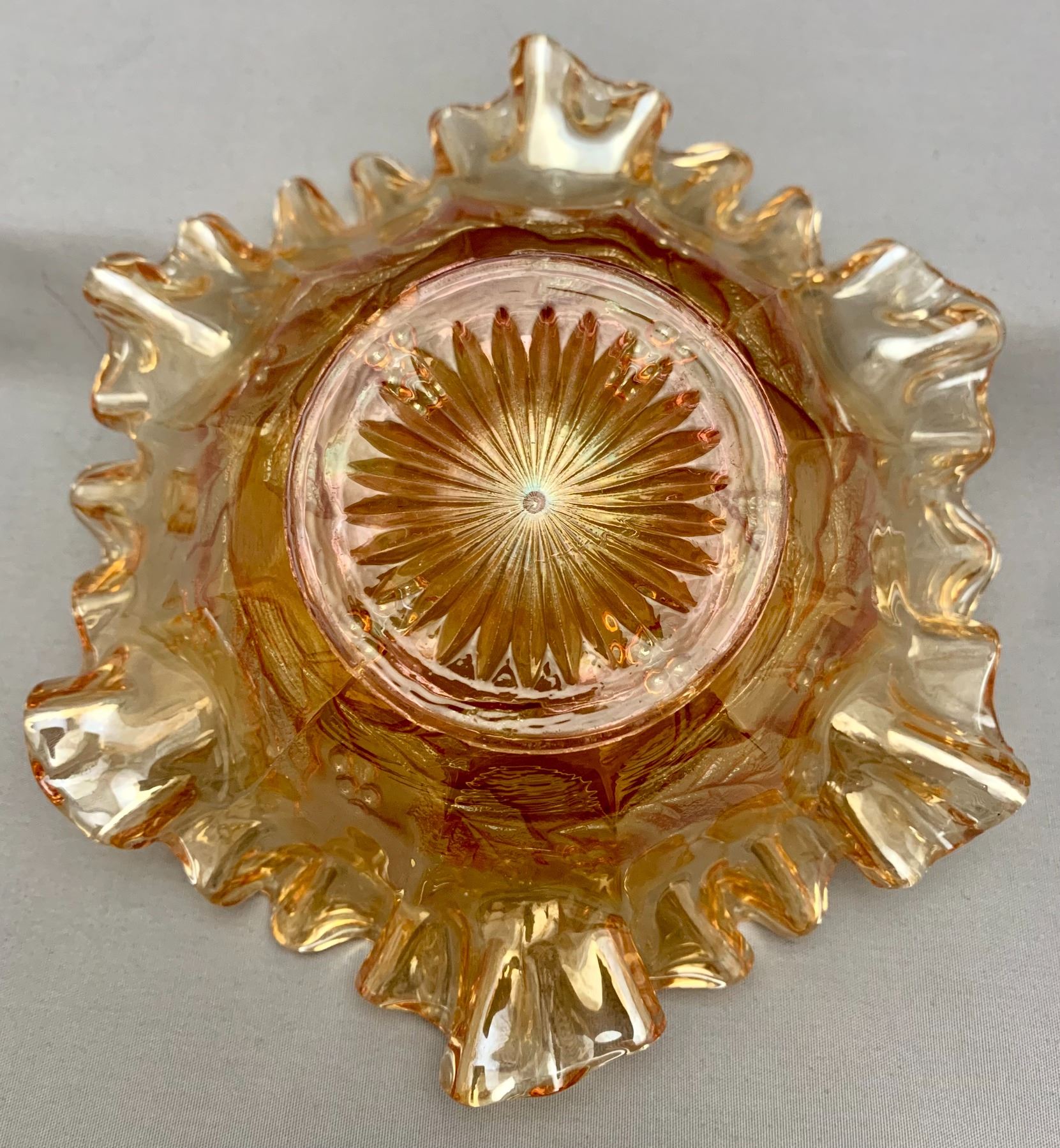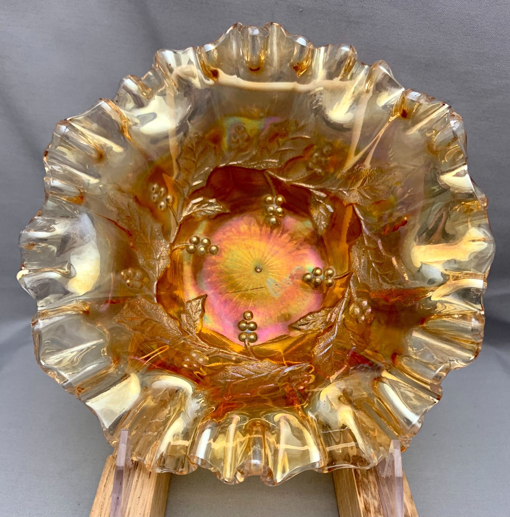 Millersburg Carnival Glass Marigold Circa 1909 “Holly Sprig” 3 in 1 Edged 7” Bowl