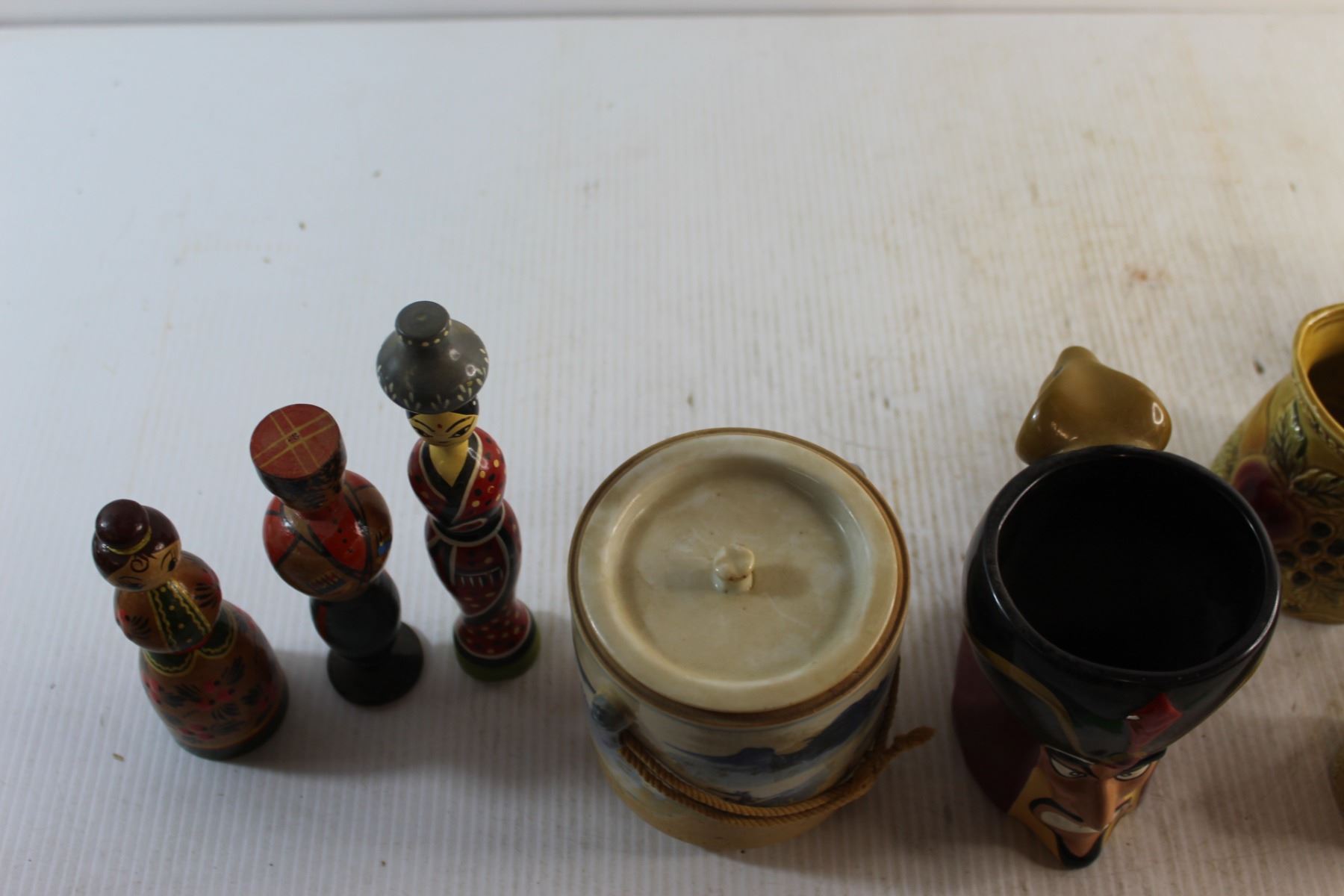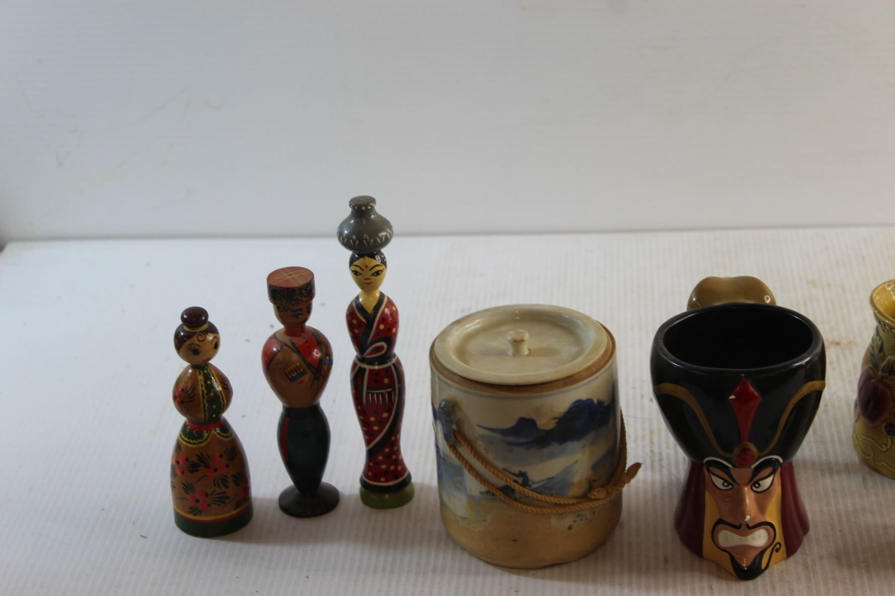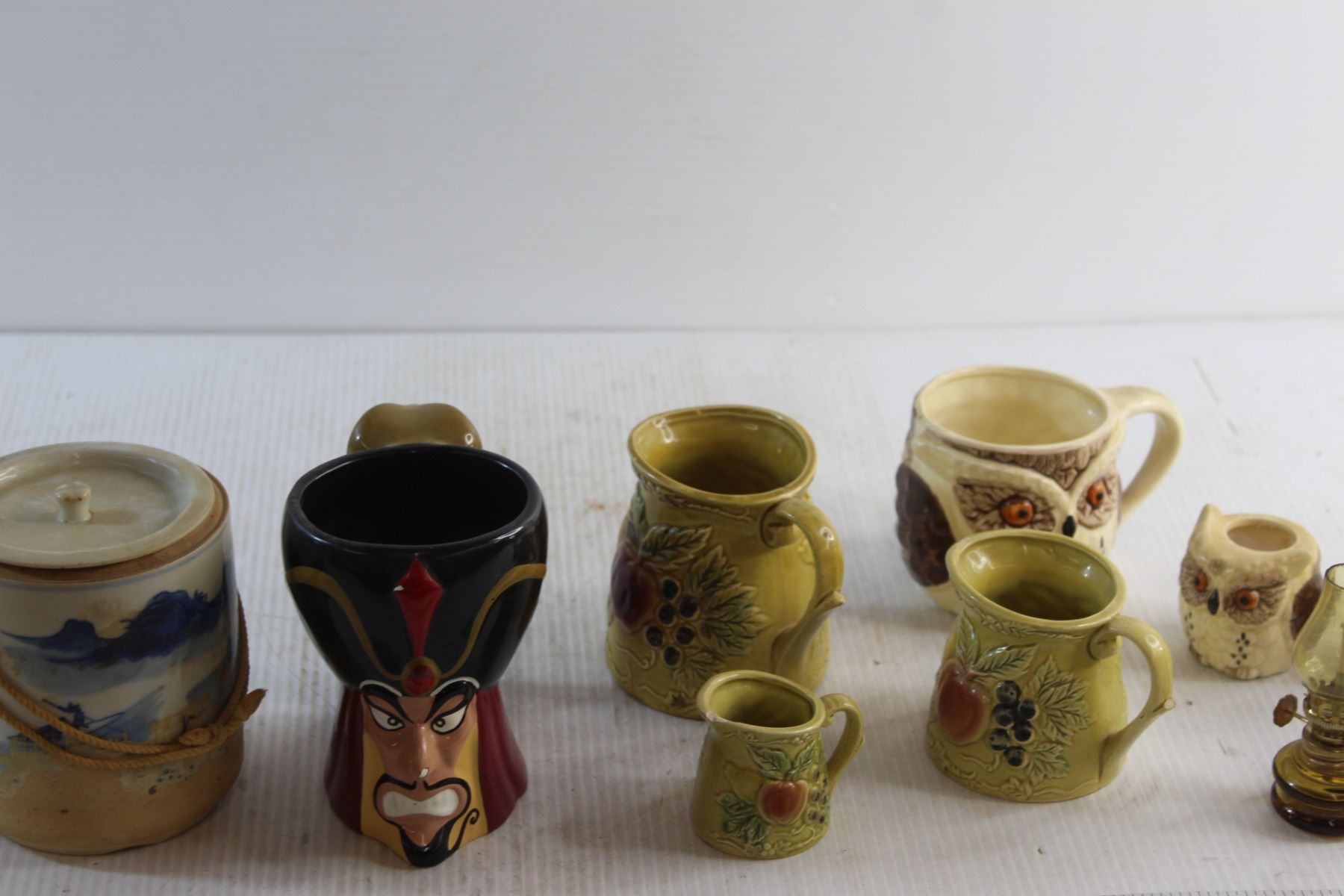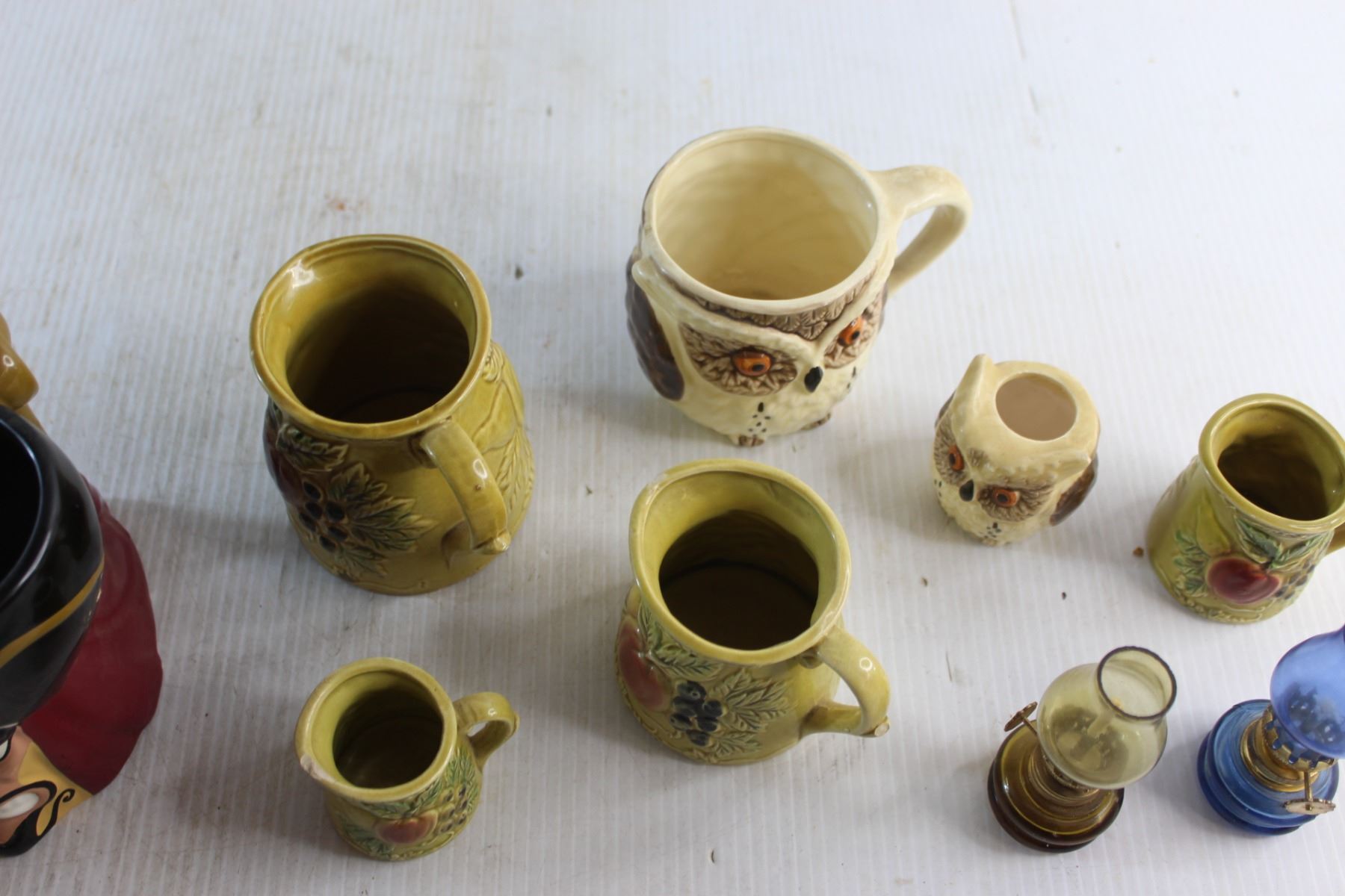 Miniature Kerosene Lamps, Creamers, Mugs and Wooden Statues