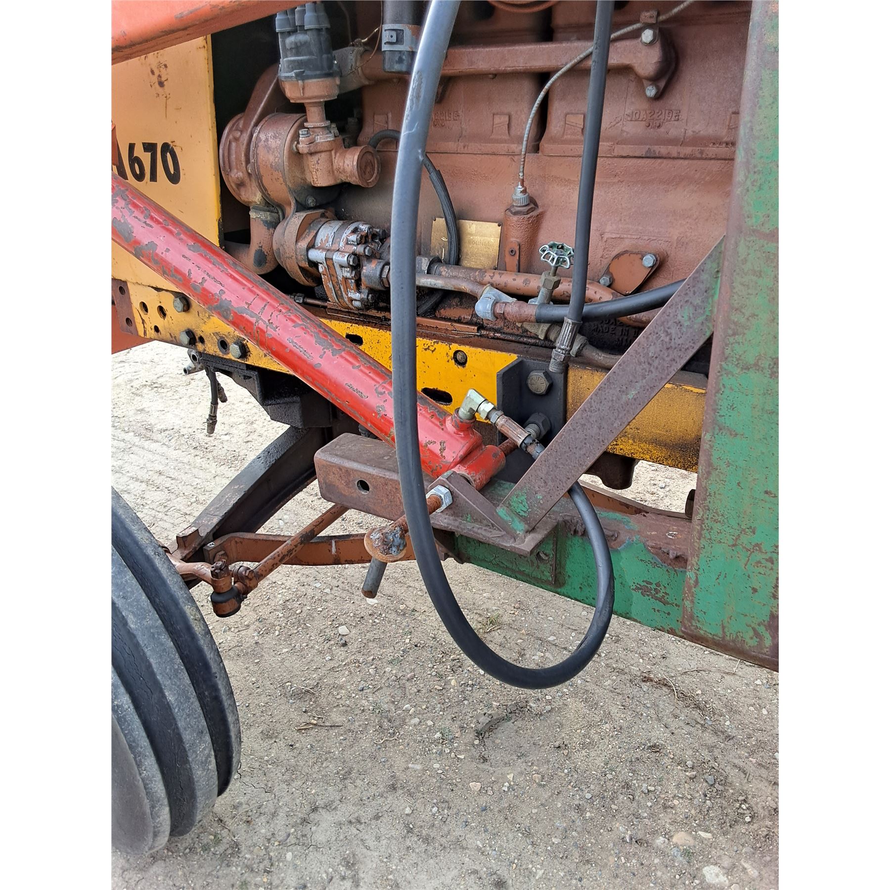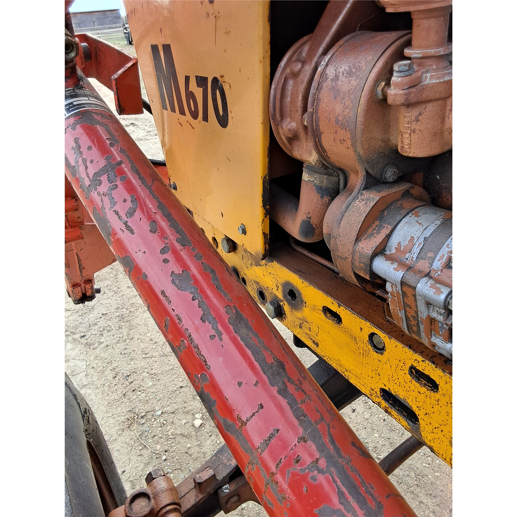 Minneapolis-Moline Super M670, model 14670 S/N 29902905 Tractor with Case Front end loader/Bucket with bale spear, 3 Point Hitch, PTO, Gasoline