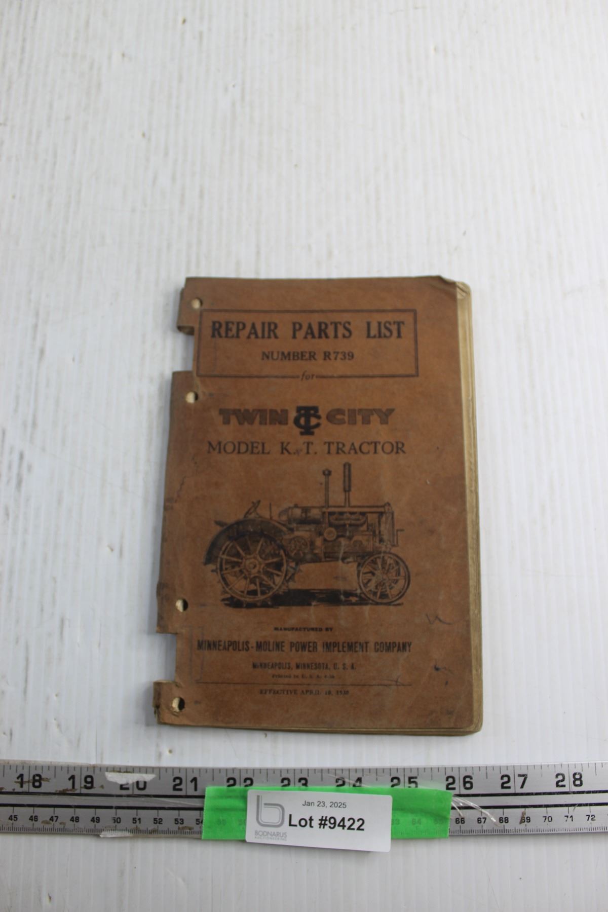 Minneapolis Moline Twin City Model K.T Tractor Repair Parts List
