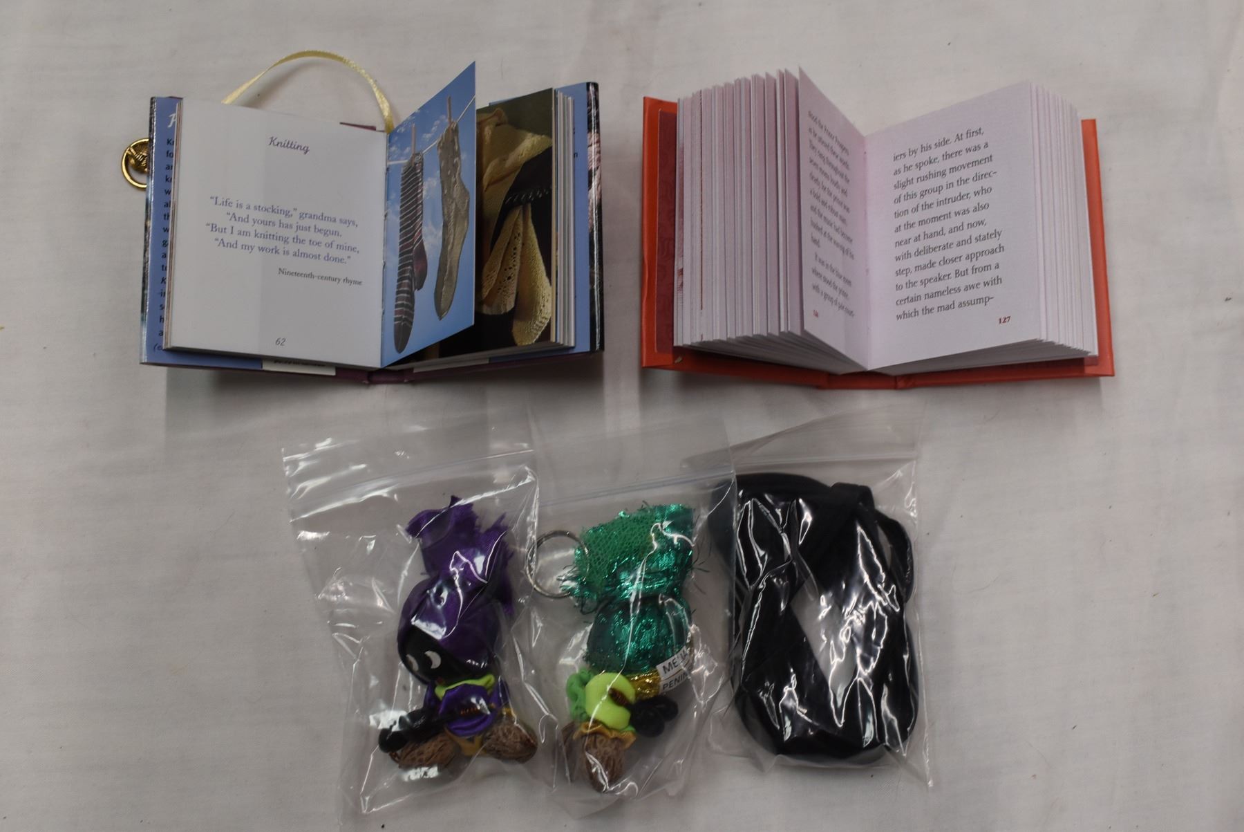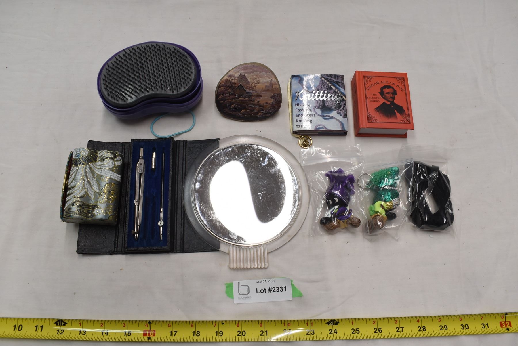 Mirror, pocket books, painted rock, misc. items
