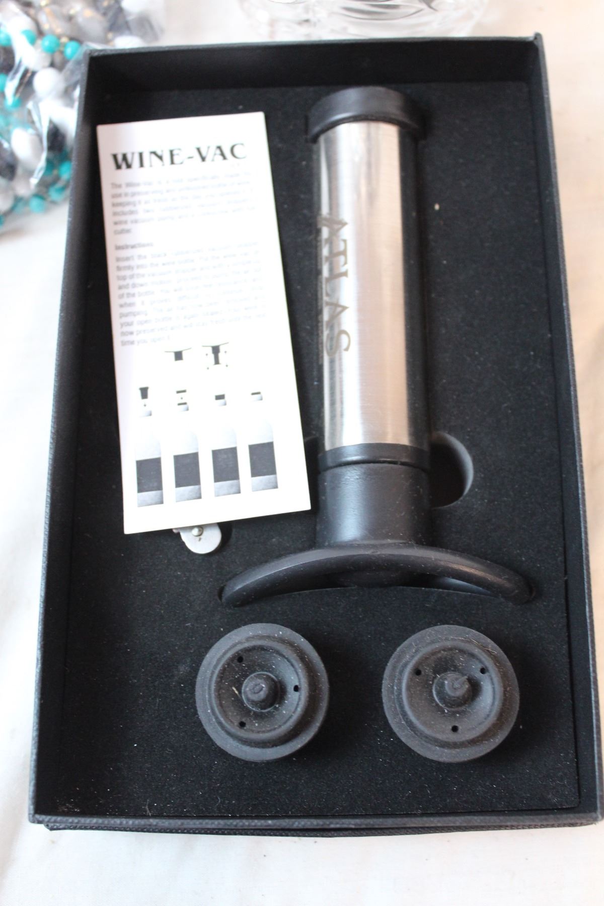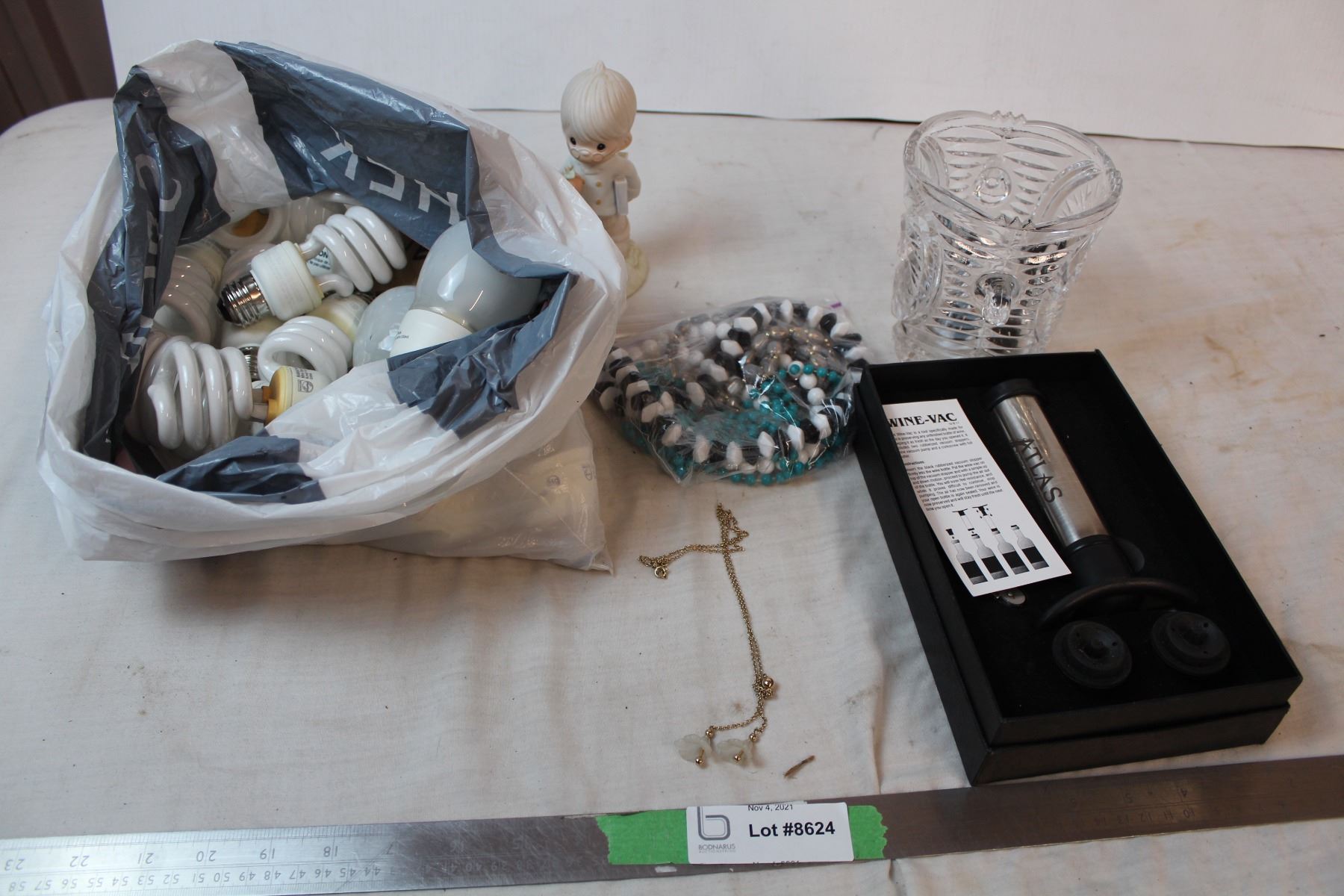 Misc. Items; Precious moments figure, Wine vac, new working light bulbs