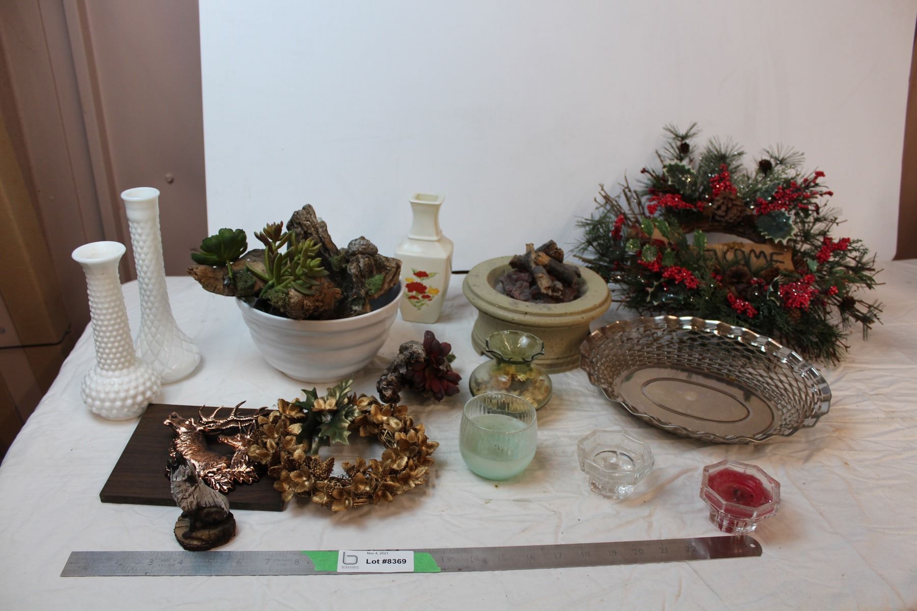 Misc. Items; wreath, candles, wooden decor
