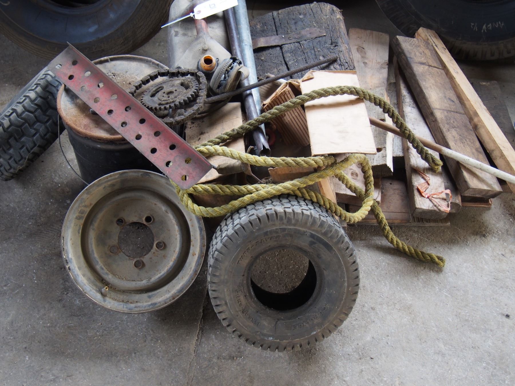 Misc Lot, Tires, Gas Can, Wooden Blocks