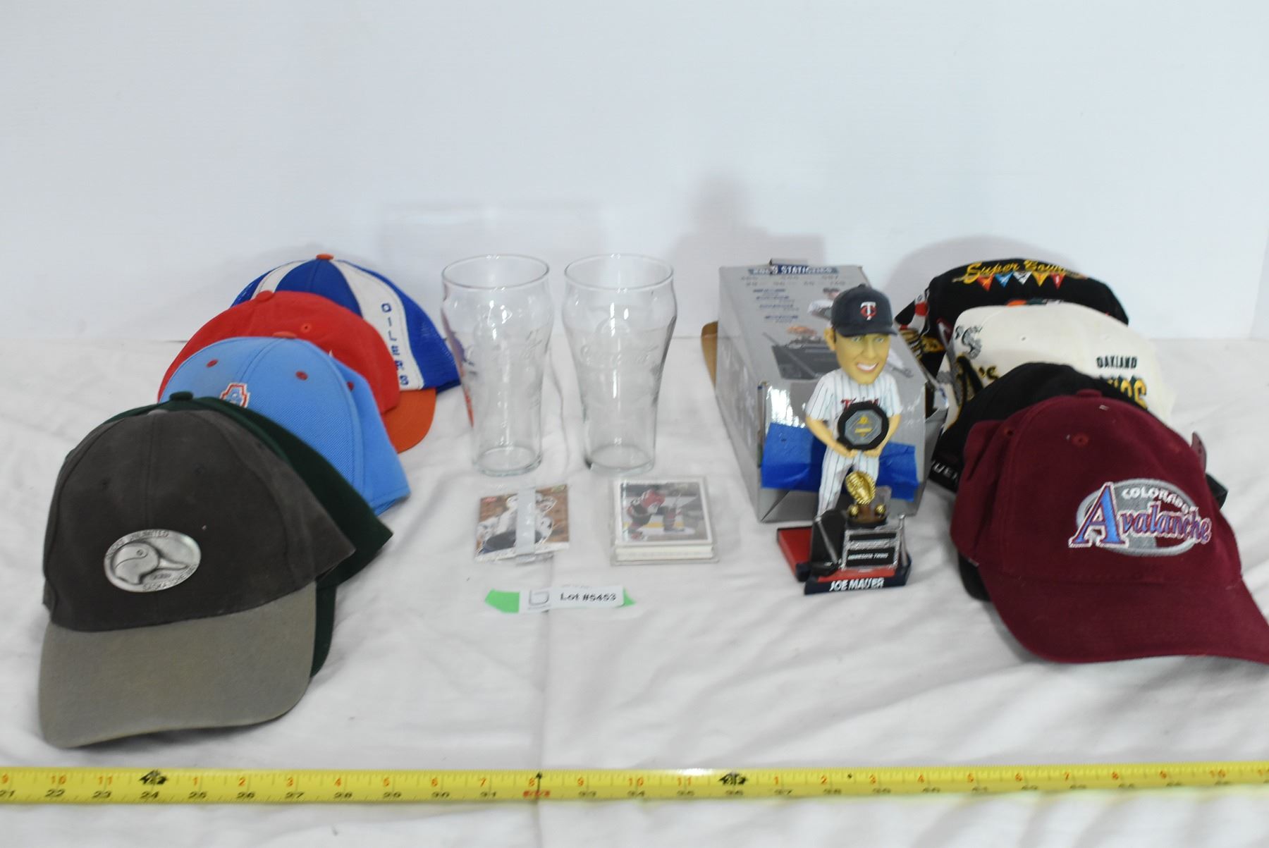 Misc. Vintage Hats, Joe Mauer MVP Bobblehead, Coca Cola Glasses & Hockey Cards