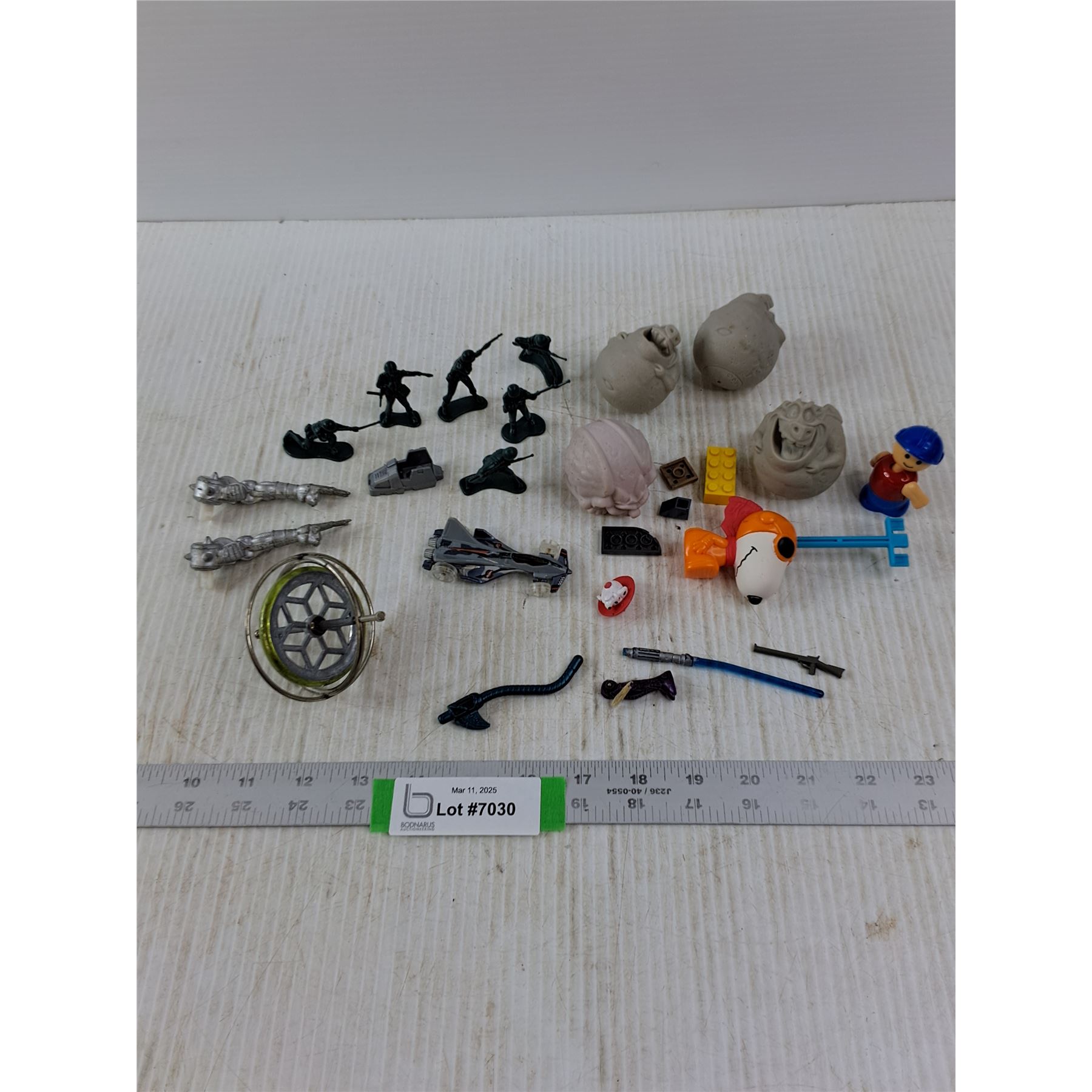 Gtroscope, China made Disney rubber ball figures, Snoopy and several figure parts and accesories