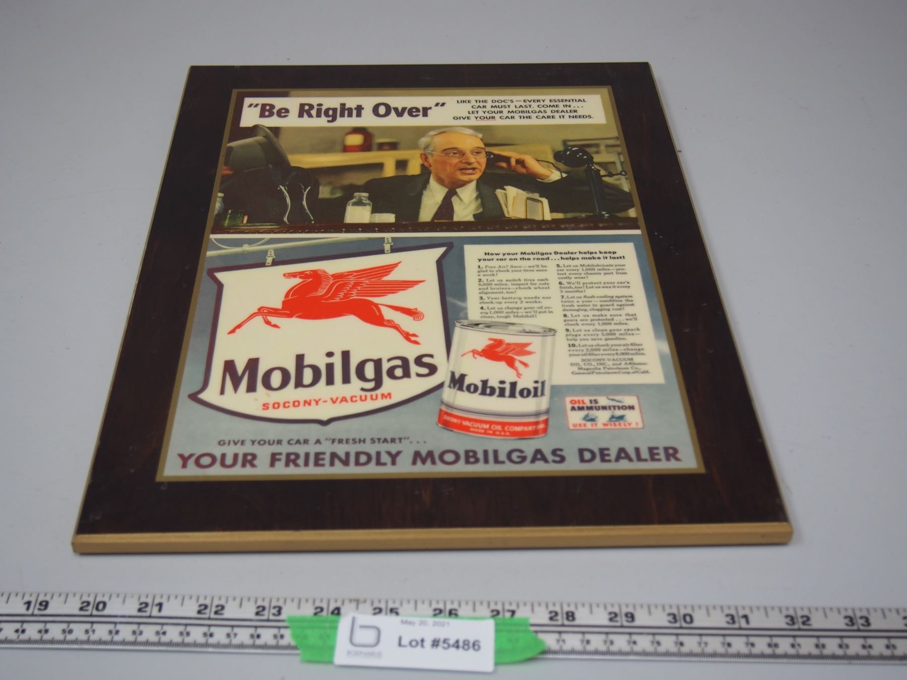 Mobil Oil Laminated Advertising on Wood (12 3/4" x 16.5" L)